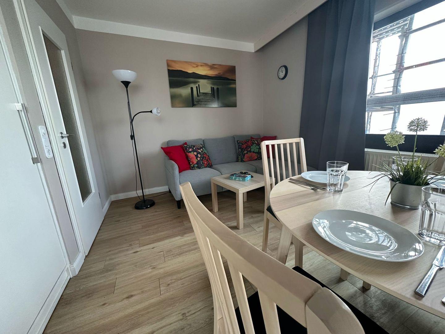 Ihr Appartement liegt im 1. Stock des Hauses "Vierjahreszeiten", an der Deichdurchfahrt zur Seebrücke am Nystedplatz.