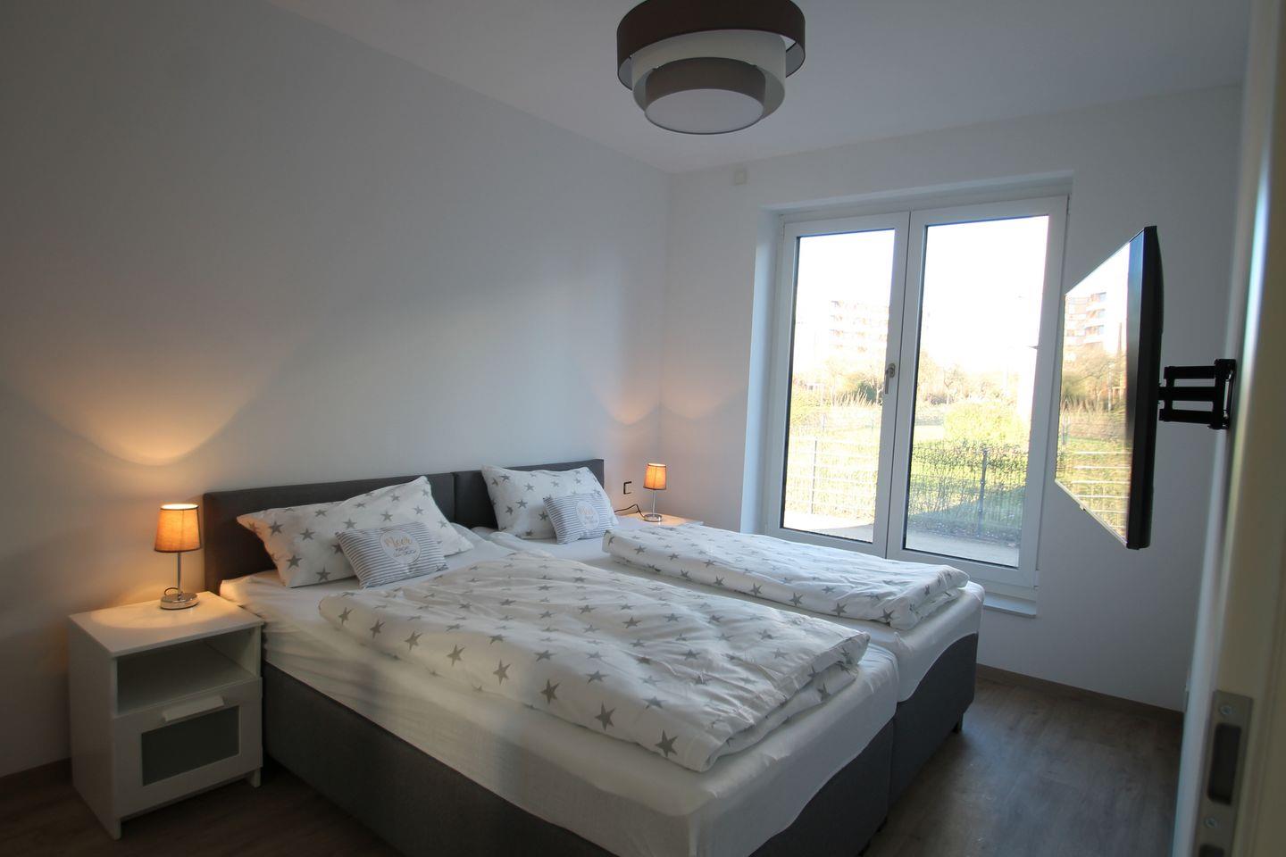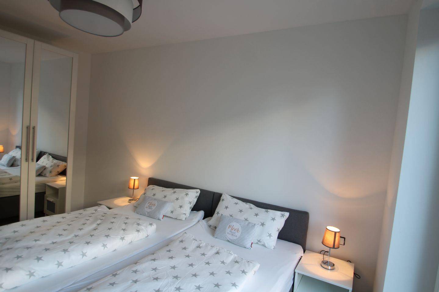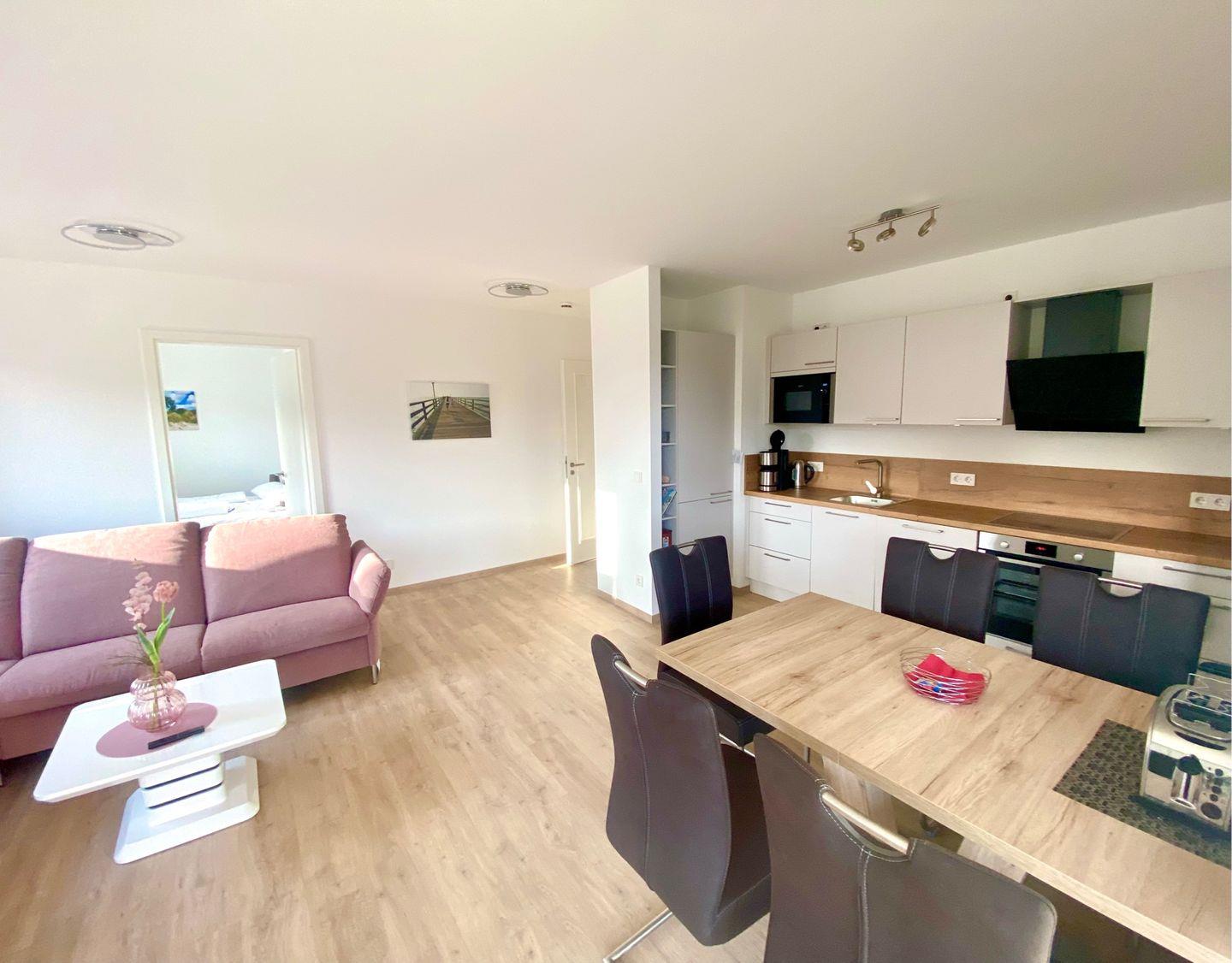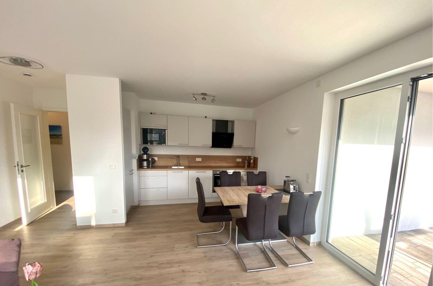 Urlaubsfeeling pur - Entdecken Sie diese sehr schöne neue, ruhige und strandnahe Ferienwohnung direkt hinterm Deich in Südwestlage. Die hell und modern eingerichtete barrierefreie 3-Zimmer-Wohnung befindet sich im Erdgeschoss und ist nur 100m vom Strand entfernt. Ein besonderes Highlight ist die Süd-/Westterrasse mit freiem Blick ins Grüne und auf einen kleinen Bach, auf der Sie bis in die Abendstunden die Sonne im Strandkorb genießen können. Die Wohnung verfügt über zwei Schlafzimmer, beide mit TV – in einem Schlafzimmer finden Sie ein Doppelbett mit den Maßen 180 x 210 cm, in dem 2. Schlafzimmer befindet sich ebenfalls ein Doppelbett (Betten sind zu zwei Einzelbetten trennbar). In beiden Schlafzimmern sorgen elektrische Jalousien – die sich in allen Räumen der Wohnung befinden - für Ihren Schlafkomfort. Die Wohnung verfügt weiterhin über ein Wohn-/Esszimmer mit heller, offener Küche (Küchenarbeitsplatte mit 103 cm Höhe) und direktem Zugang zur Süd-Westterrasse. Zusätzlich zu dem WC im schönen, geräumigen Tageslicht-Duschbad mit Spiegelschrank und mit barrierefreier Dusche steht Ihnen ein separates Gäste-WC zur Verfügung. Die Waschmaschine befindet sich im Abstellraum der Wohnung. Der wohnungseigene PKW-Stellplatz ist direkt am Haus. Hier können Sie - bei Bedarf - Ihr Elektrofahrzeug gegen Gebühr an der zur Wohnung gehörenden Ladesäule laden. Freuen Sie sich auf eine helle, moderne und mit viel Liebe eingerichtete Wohnung mit Wohlfühlfaktor. Liebe Hunde ( max. 2) sind herzlich Willkommen!