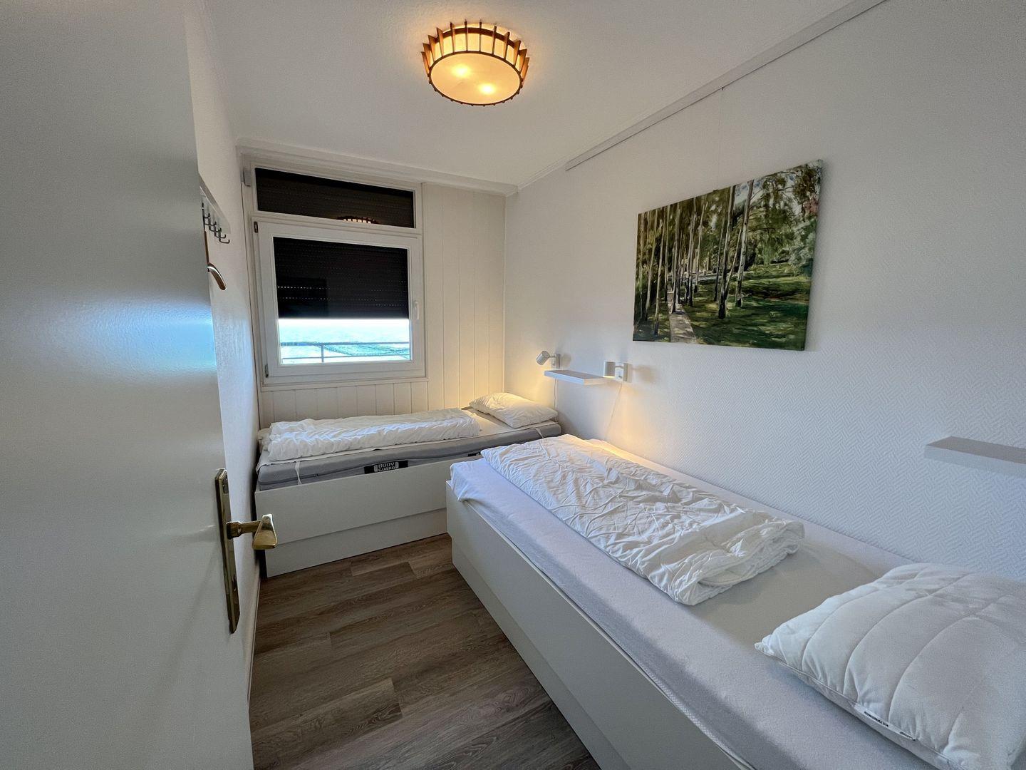 - separater Schlafraum mit zwei über Eck stehenden Einzelbetten