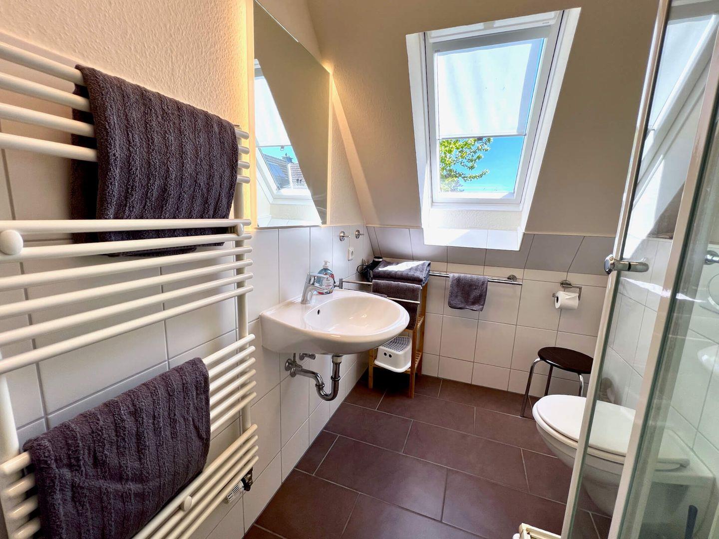 - Badezimmer mit Dusche, WC und Fenster