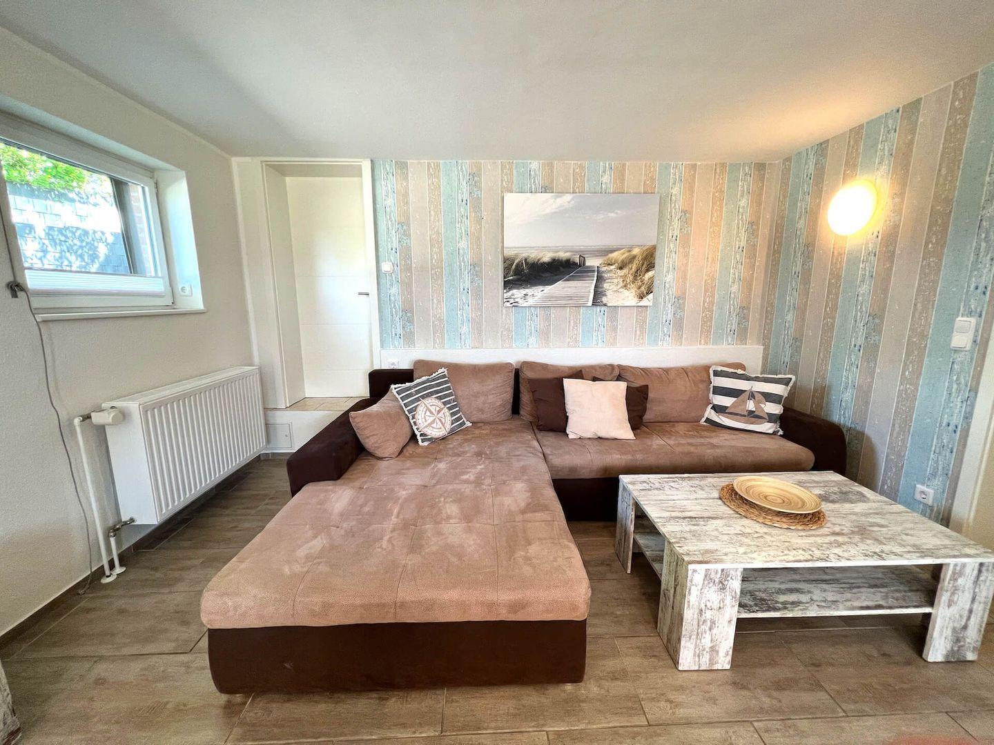 "Holiday 5" reichlich Platz für max. 4 Personen auf 84 m² Wohnfläche im Tiefparterre mit Terrasse mit Blick ins Grüne!