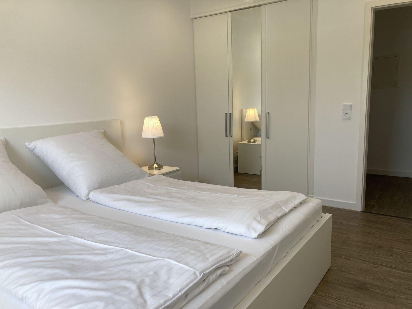 - Schlafzimmer mit Doppelbett und Kleiderschrank