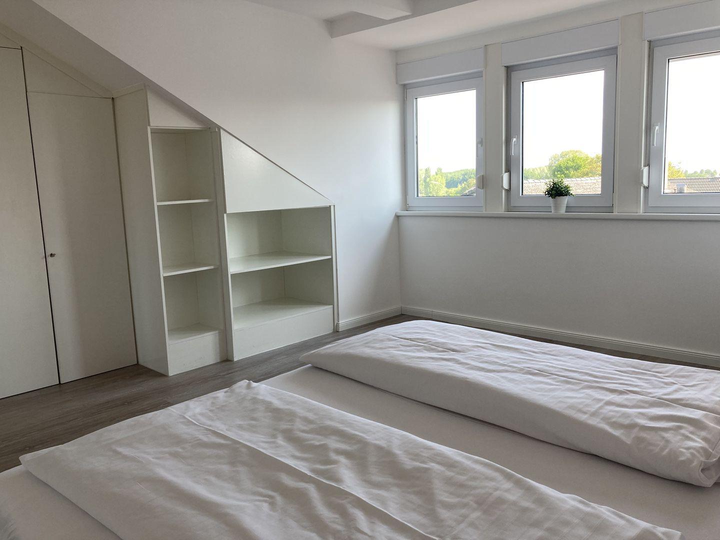 - Schlafzimmer mit Doppelbett und Kleiderschrank