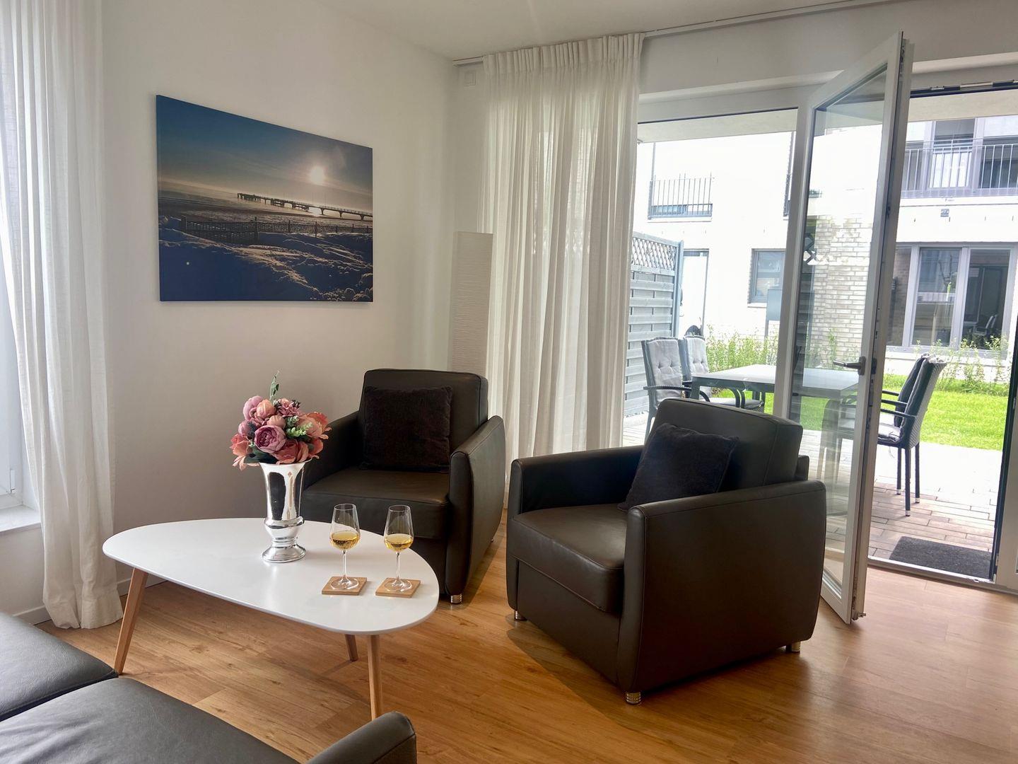 Edles Apartment mit 2 Schlafzimmern, Terrasse und nur 130 m vom Sandstrand in Dahme entfernt.