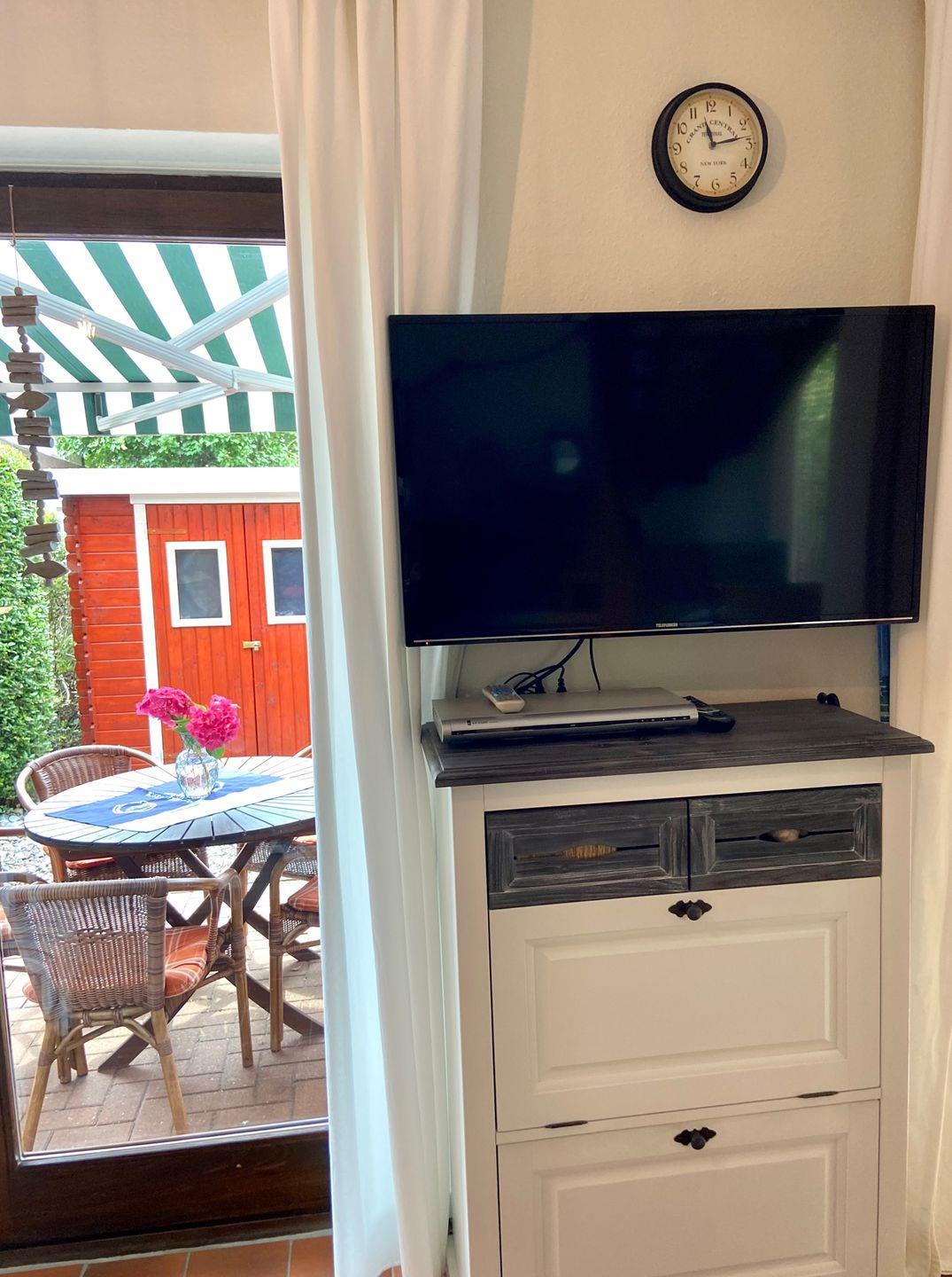 TV-Geräte in allen Räumen runden die gehobene Einrichtung ab.