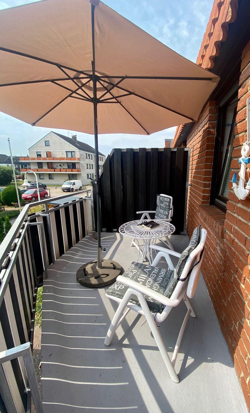 Gemütliche Ferienwohnung in Dahme mit Strandnähe, eingezäuntem Garten und Meerblick auf dem Balkon.