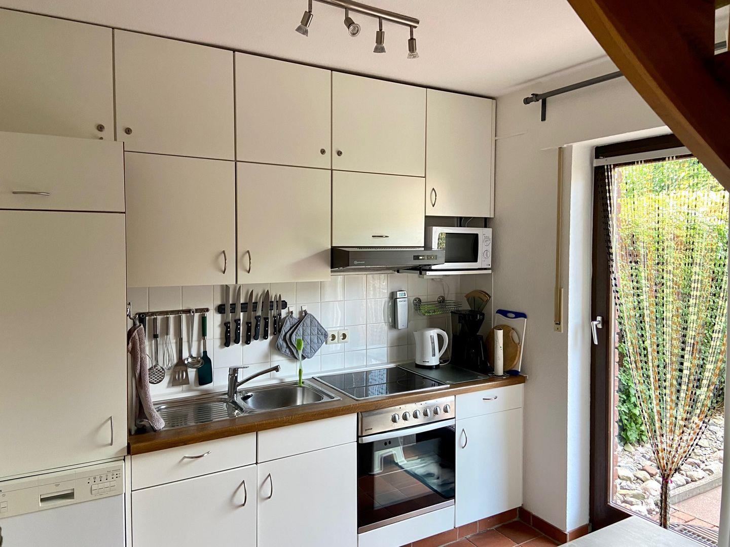 Im Erdgeschoss verfügt das Haus über eine offene Küche, einen gemütlich eingerichteten Wohnbereich, sowie ein separates WC.