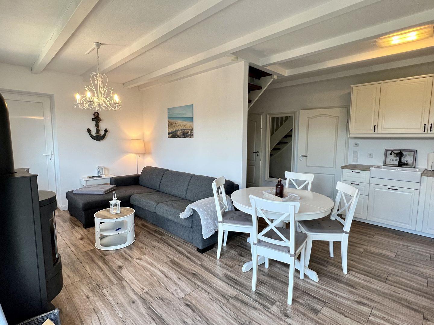 - Wohn-Essbereich mit voll ausgestatteter Küche und Essplatz, gemütlichem Relaxbereich mit hochwertiger Schlafcouch und Holzofen, Zugang zu Terrasse und Garten