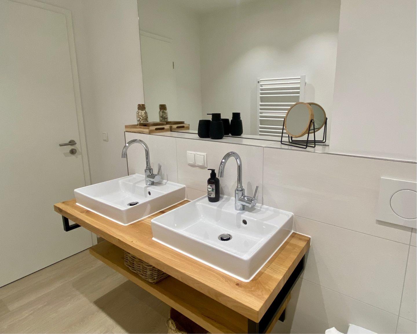 Die moderne, stilvoll eingerichtete Wohnung lässt keinen Wunsch offen. Es gibt einen großzügigen Wohnraum mit TV, Wii mit einer Auswahl an diversen Spielen, Radio mit CD, Bücher und WLAN. Die offene, moderne Einbauküche mit großzügigem Essbereich genügt höchsten Ansprüchen und verfügt über Nespresso-Maschine, Backofen, Spülmaschine und Induktionskochfeld. Zwei separate Schlafzimmer - eines mit TV - mit hochwertigen Doppelbetten sowie ein modernes Bad mit großem, ebenerdigen Duschbereich und Fußbodenheizung stehen zur Verfügung. Zusätzlich gibt es ein Gäste-WC. Die große Terrasse ist mit Esstisch und Stühlen ausgestattet und teilweise überdacht. Ein fester PKW-Stellplatz ist für Sie reserviert. Eine Wallbox kann gegen Gebühr genutzt werden. Ein Fahrradabstellraum, ein kleiner Abstellraum in der Wohnung und eine Waschmaschine sind ebenfalls für Ihren Komfort vorhanden. Ein Kinderreisebett sowie einen Hochstuhl finden Sie in der Wohnung. Bei dieser Wohnung handelt es sich um ein Nichtraucherobjekt. Haustiere sind nicht erlaubt!