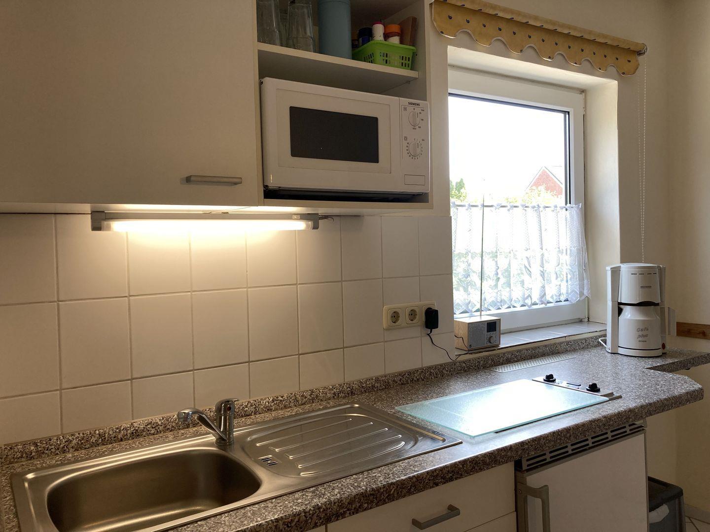 - Küche mit Mini-Backofen, 2-Plattenherd und Essplatz