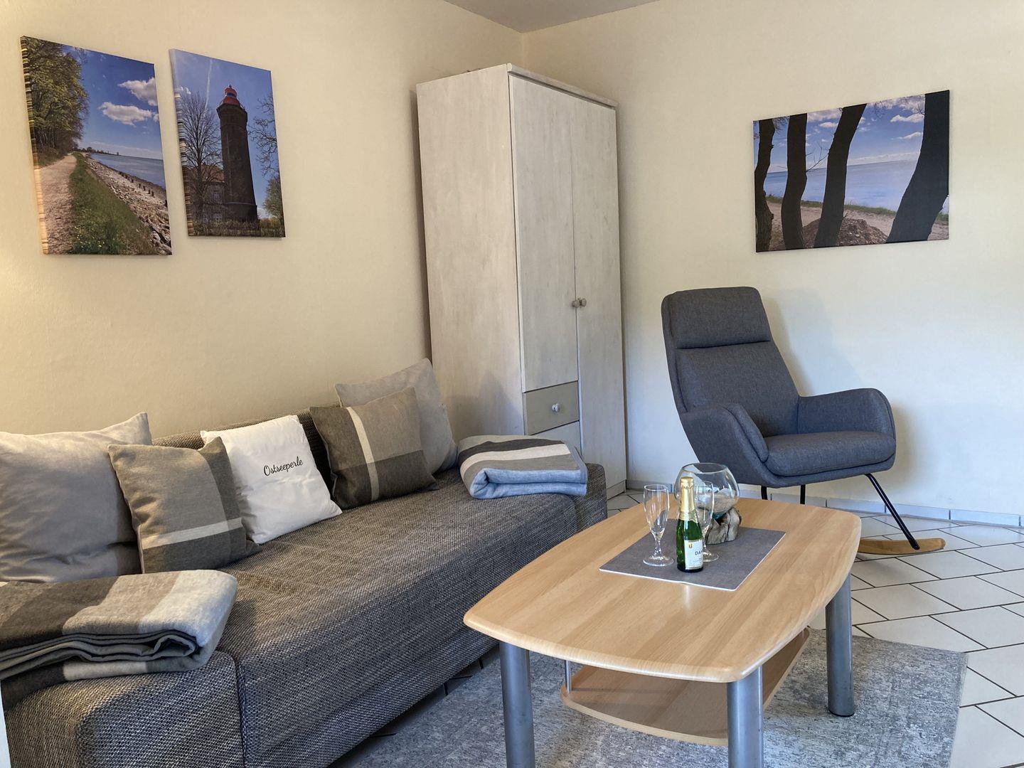 Gemütliche Ferienwohnung Ostseeperle in Dahme, strandnah und ruhig mit Terrasse und Strandkorb.