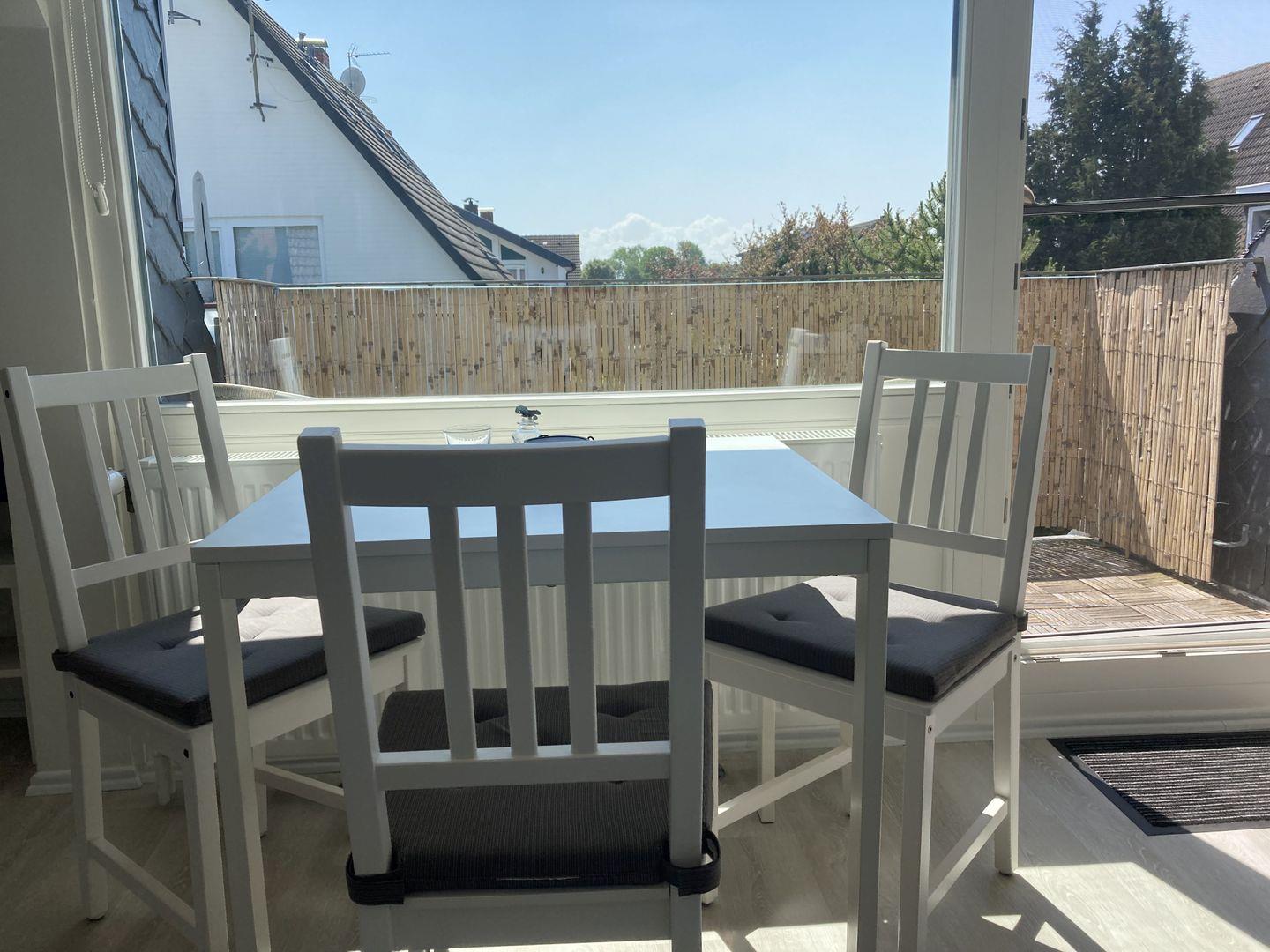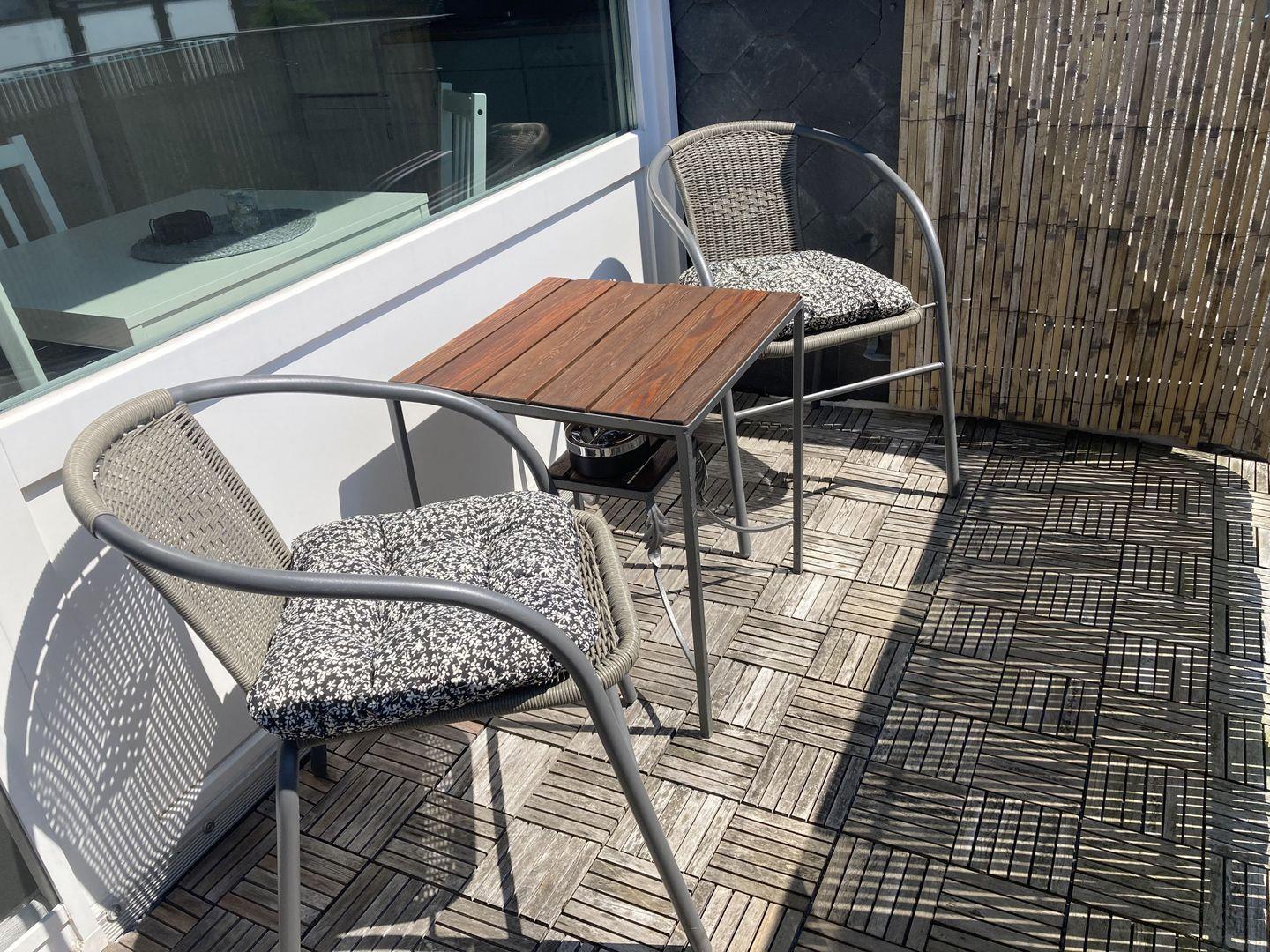 - Balkon mit Tischchen und 2 Stühlen