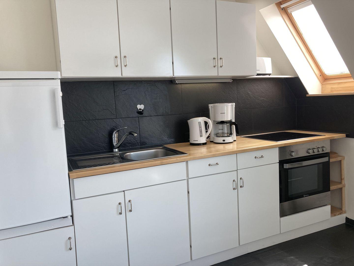 - im Wohnraum integrierte Küchenzeile mit Herd und Backofen