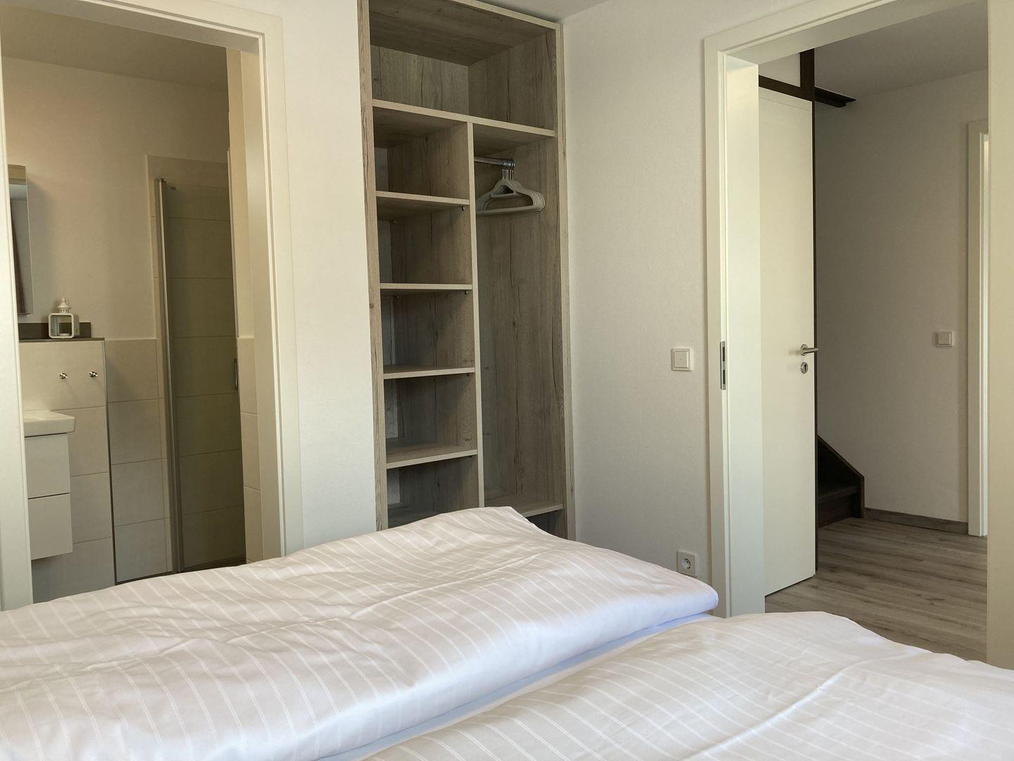 - Schlafzimmer mit hochwertigem Doppelbett, Kleiderschrank und TV,