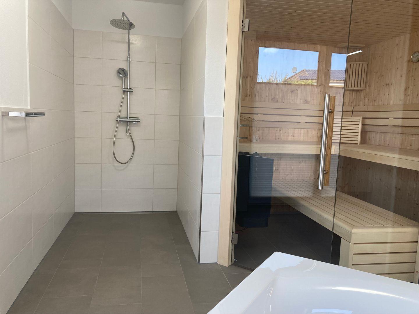 - luxuriöses Wellnessbad mit Whirlwanne, Walk In Dusche und Sauna