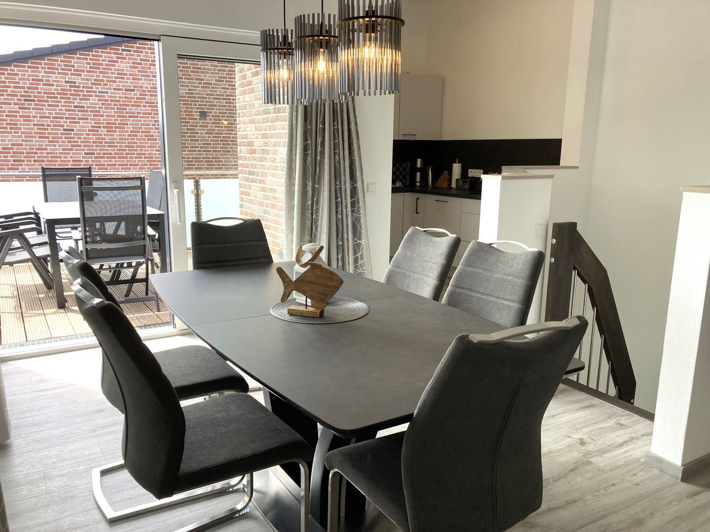 integrierte voll ausgestattete Küche, Induktionsherd und großzügigem Essbereich,