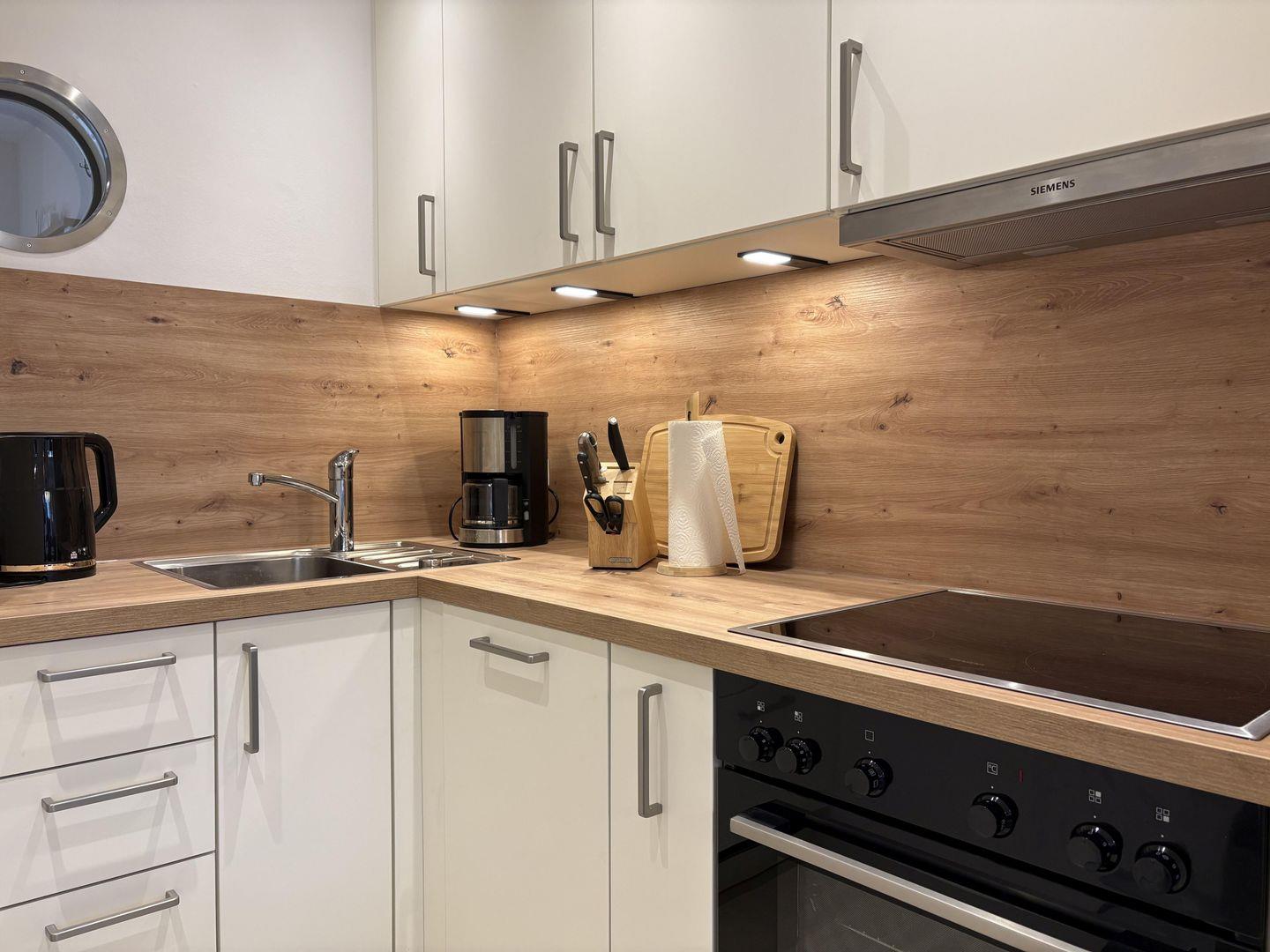 - separate Küche mit Spülmaschine, Backofen, Mikrowelle, etc.