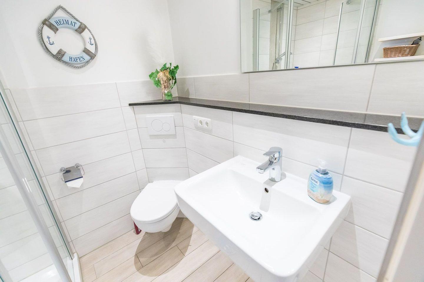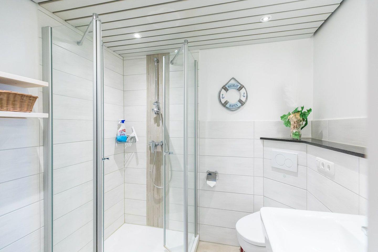 - Badezimmer mit großer Dusche und WC