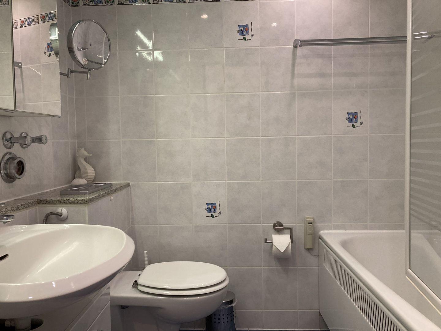 - Badezimmer mit Badewanne, Duschabtrennung und WC