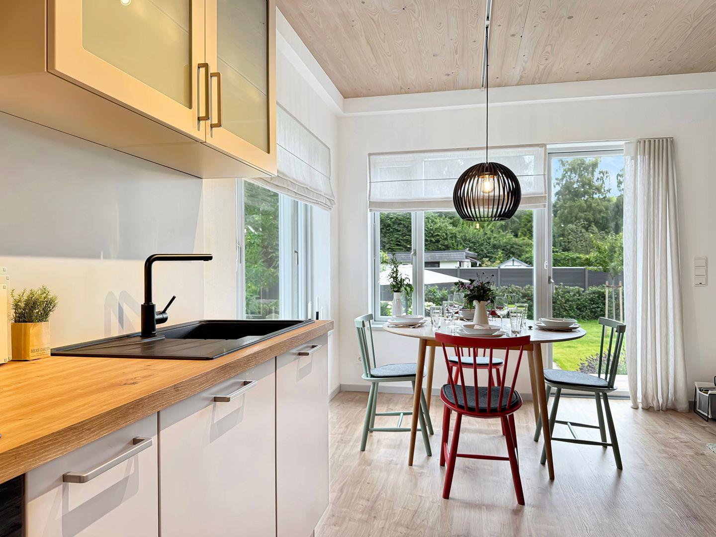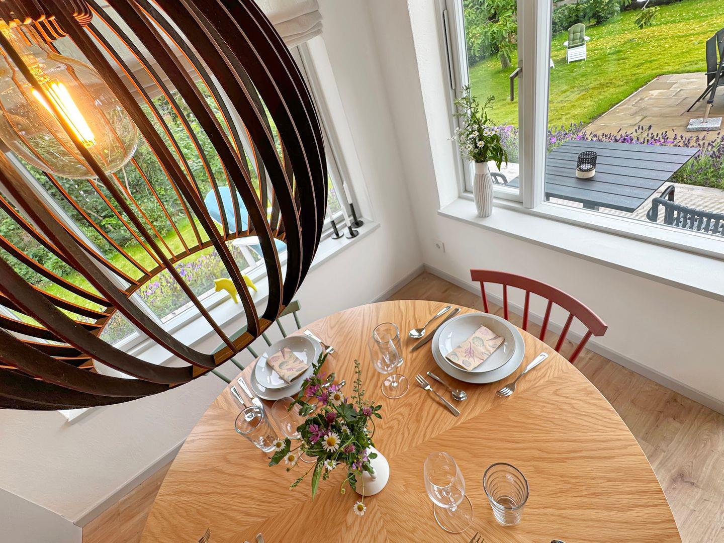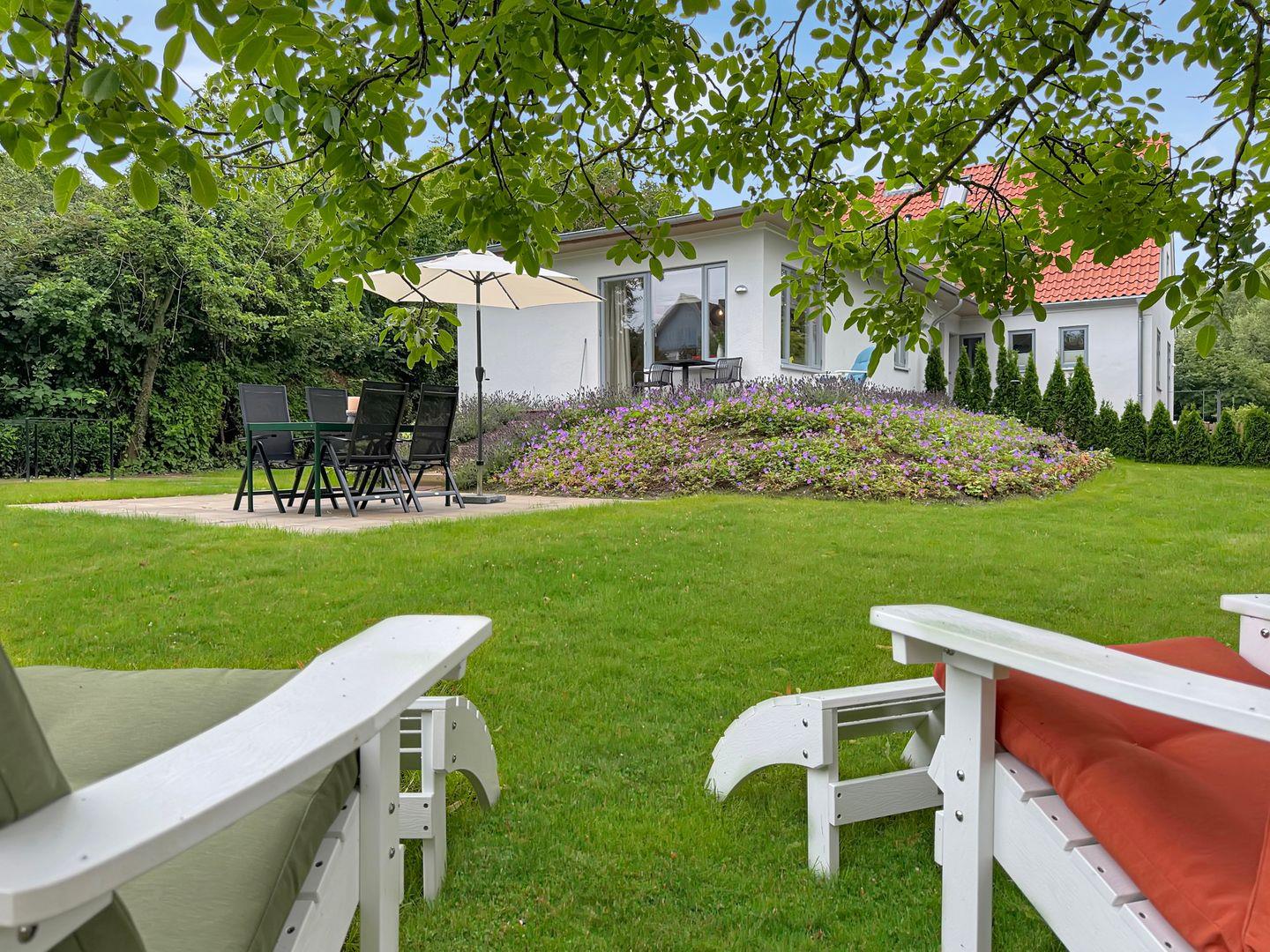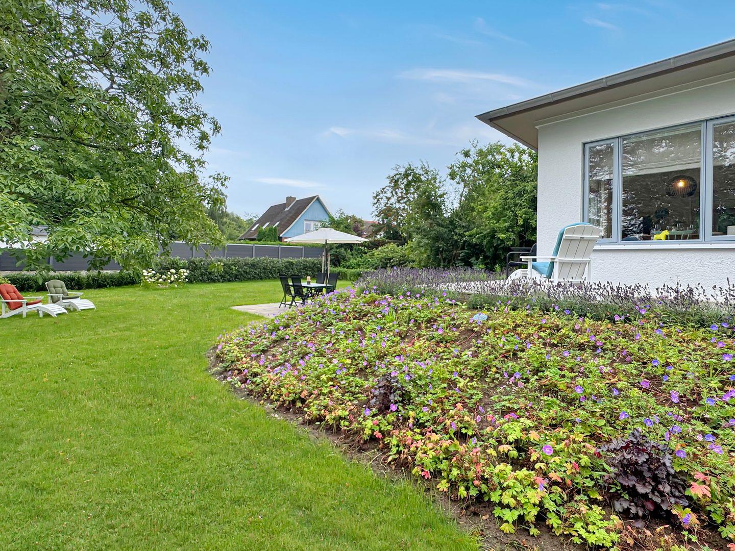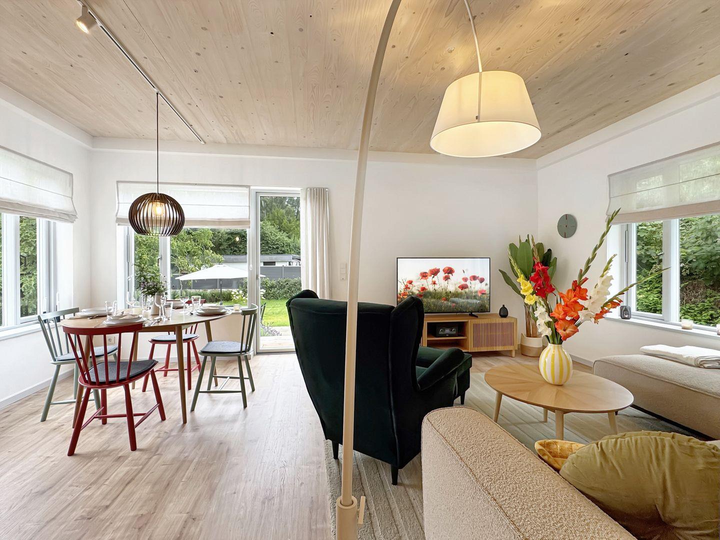 Moderne Ferienwohnung Hygge am Park in Dahme, nur 300 Meter vom Strand entfernt, mit Terrasse und Garten zum Entspannen.
