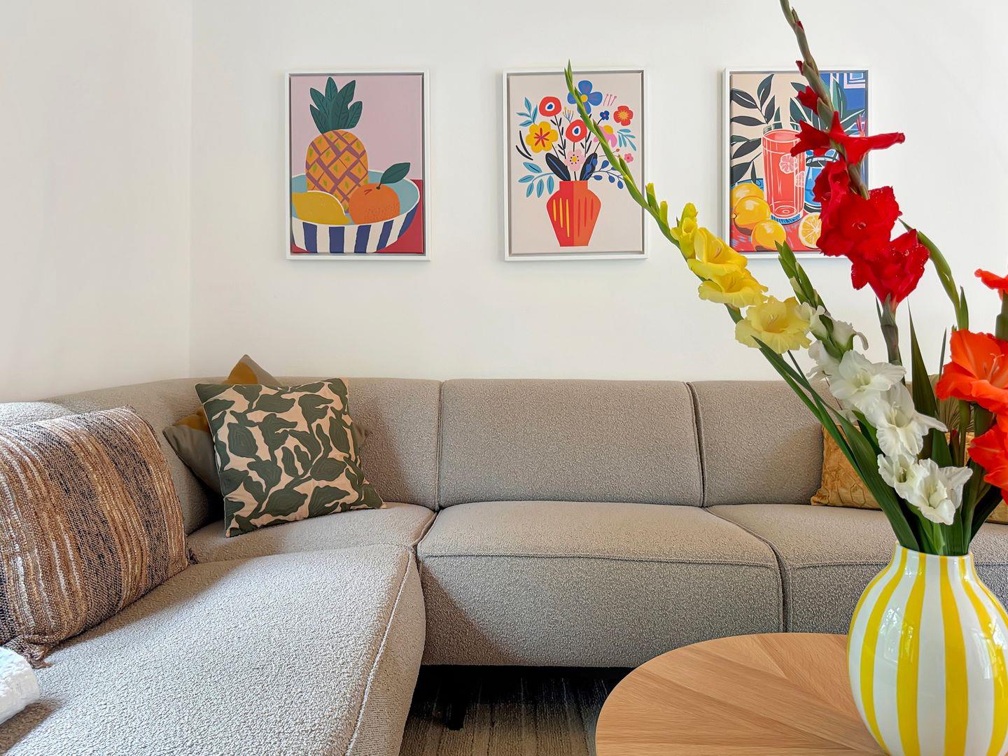 Die Wohnung erstreckt sich über 60 m² und ist geschmackvoll eingerichtet. Der großzügige Wohnbereich ist mit Parkett ausgelegt, verfügt über eine komfortable Sofaecke und einen Essbereich, der zu gemeinsamen Mahlzeiten einlädt. Die große, offene Küche ist mit hochwertigen Geräten ausgestattet, darunter ein Herd, eine Spülmaschine, eine Kaffeemaschine und viele Küchenutensilien, damit Sie Ihre kulinarischen Fähigkeiten voll ausleben können. Genießen Sie die Flexibilität, frische Zutaten aus dem nahegelegenen Supermarkt zuzubereiten und sich beim gemeinsamen Kochen zu amüsieren!