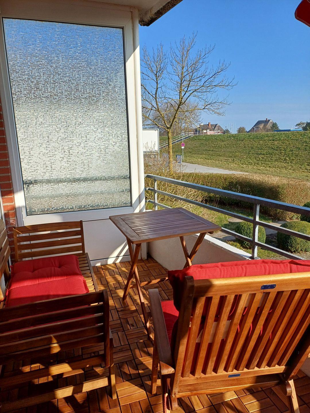 - möblierter Balkon in Süd-, Ostlage mit Blick auf den Deich und etwas Ostseeblick