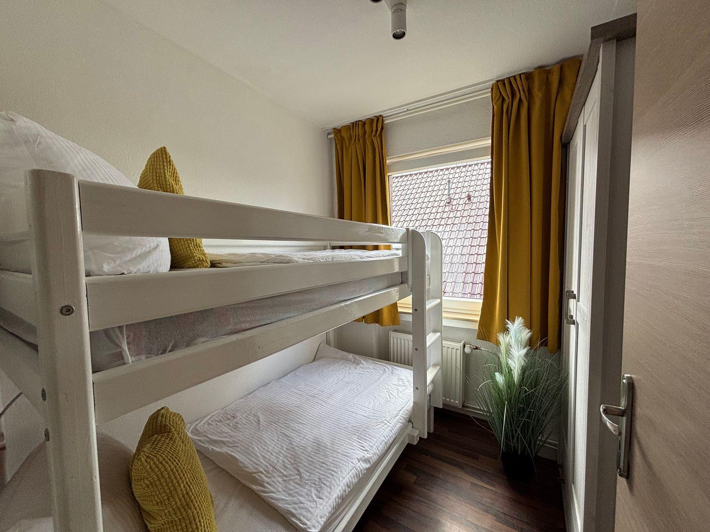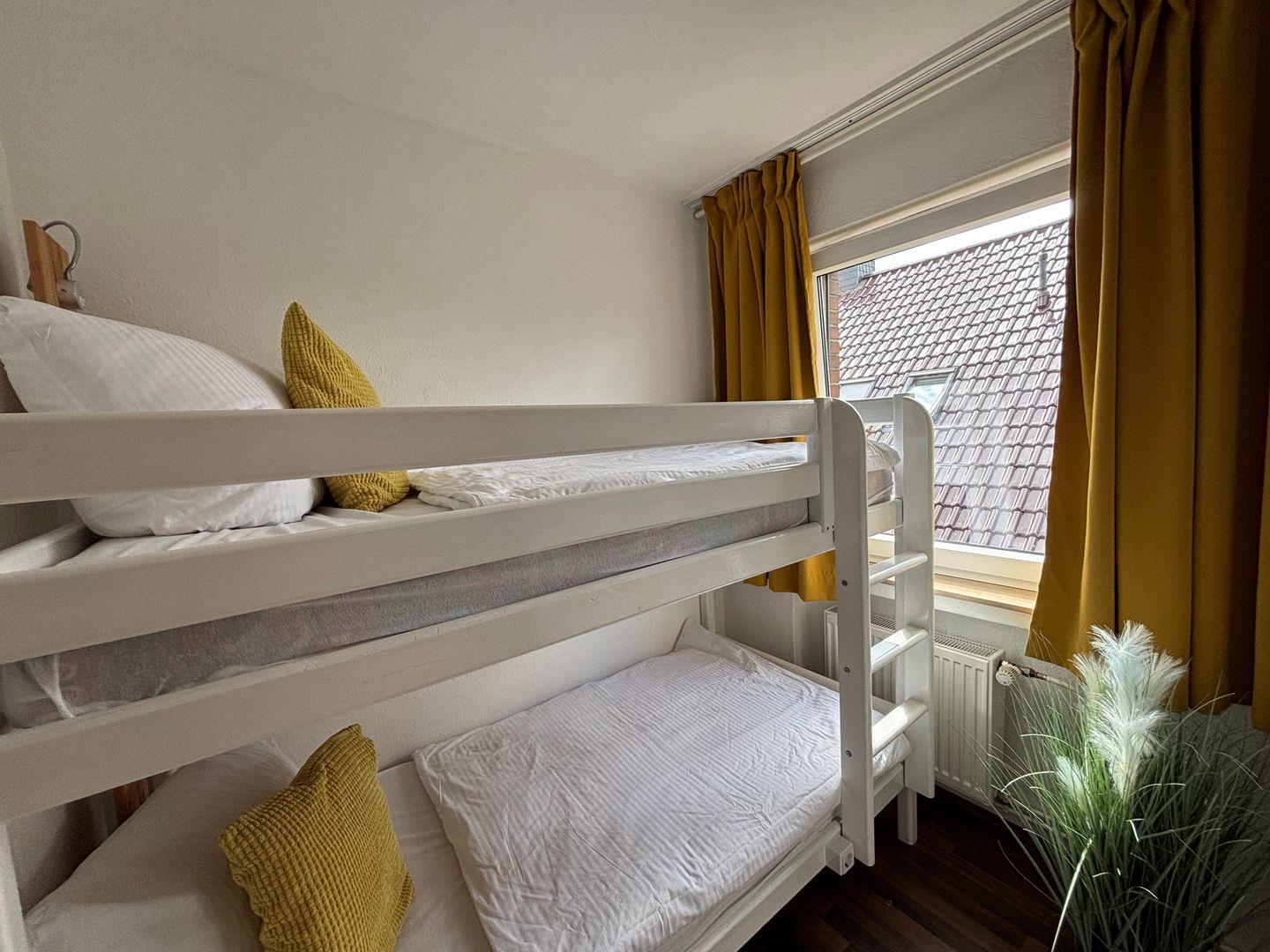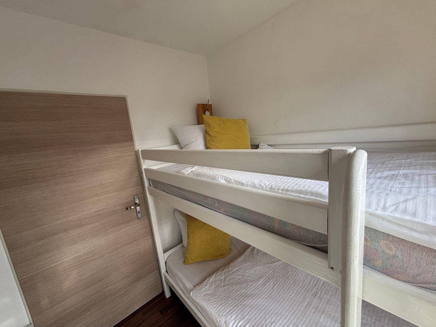Zwei Schlafzimmer. Ein Schlafzimmer mit Hochbett. Ein Schlafzimmer mit zwei Einzelbetten. Maße 0,90 m x 2,00 m. Erholsamer Schlaf.