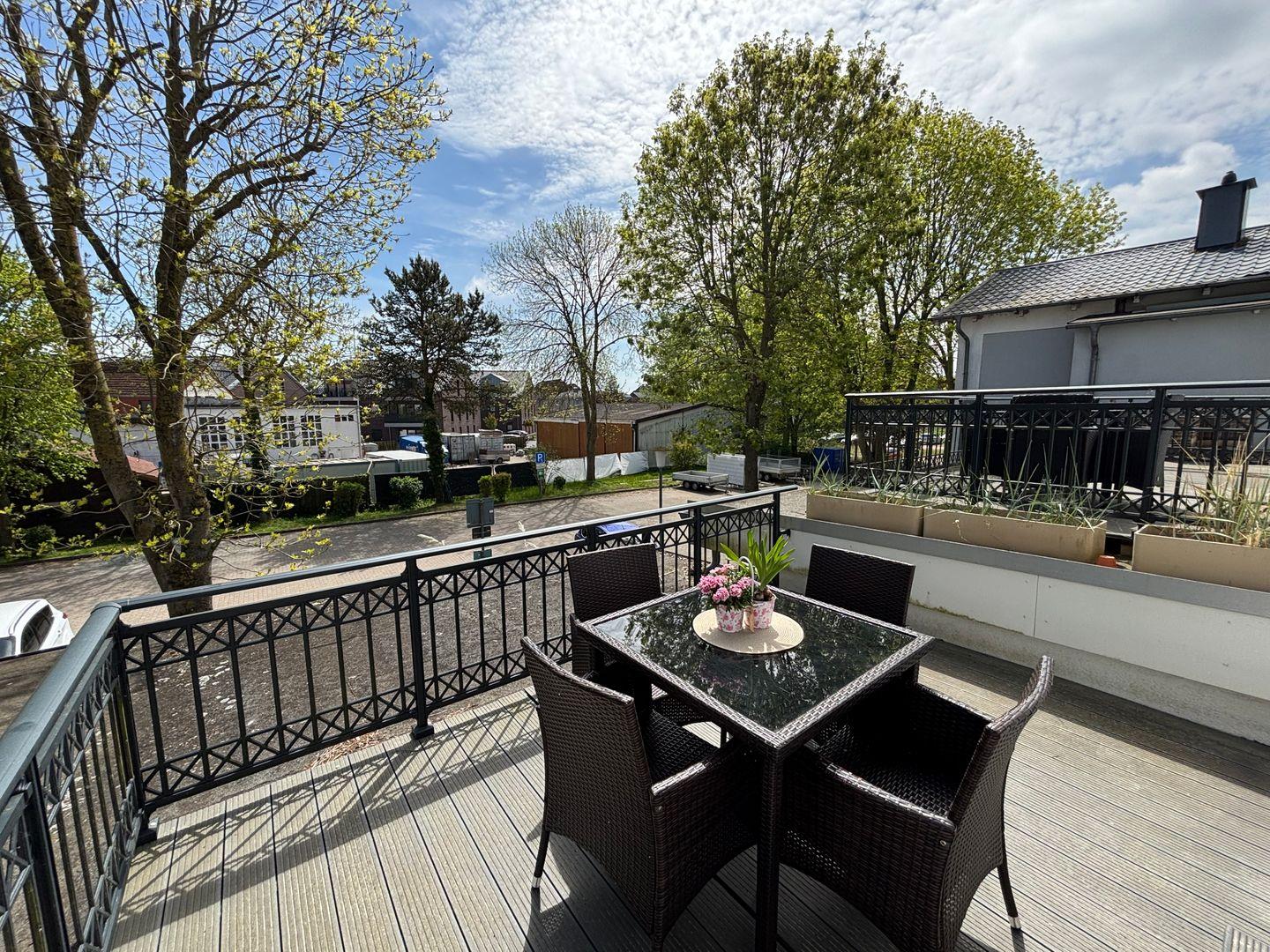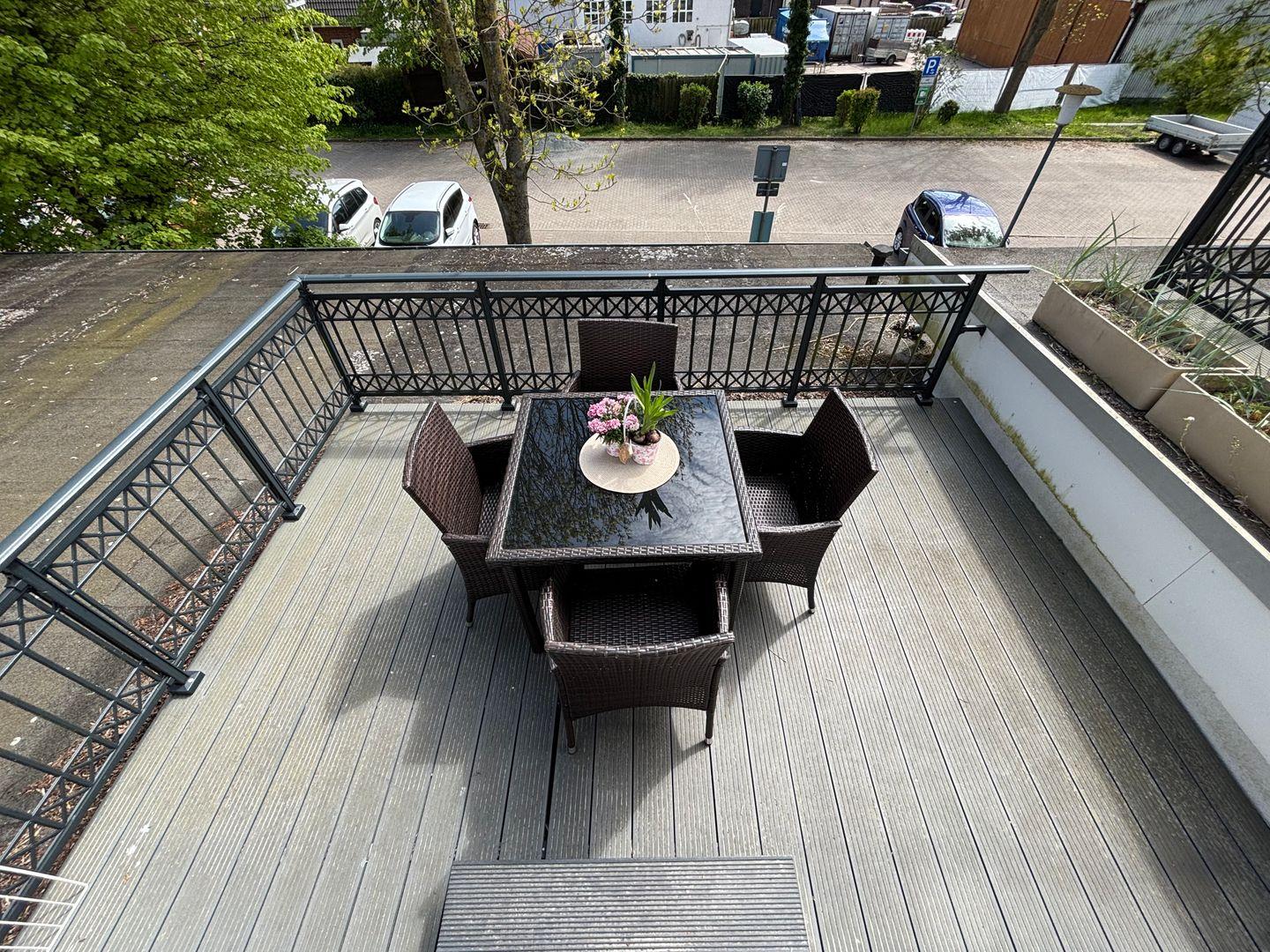 Auszeit im Freien. Balkon mit Gartenmöbeln.