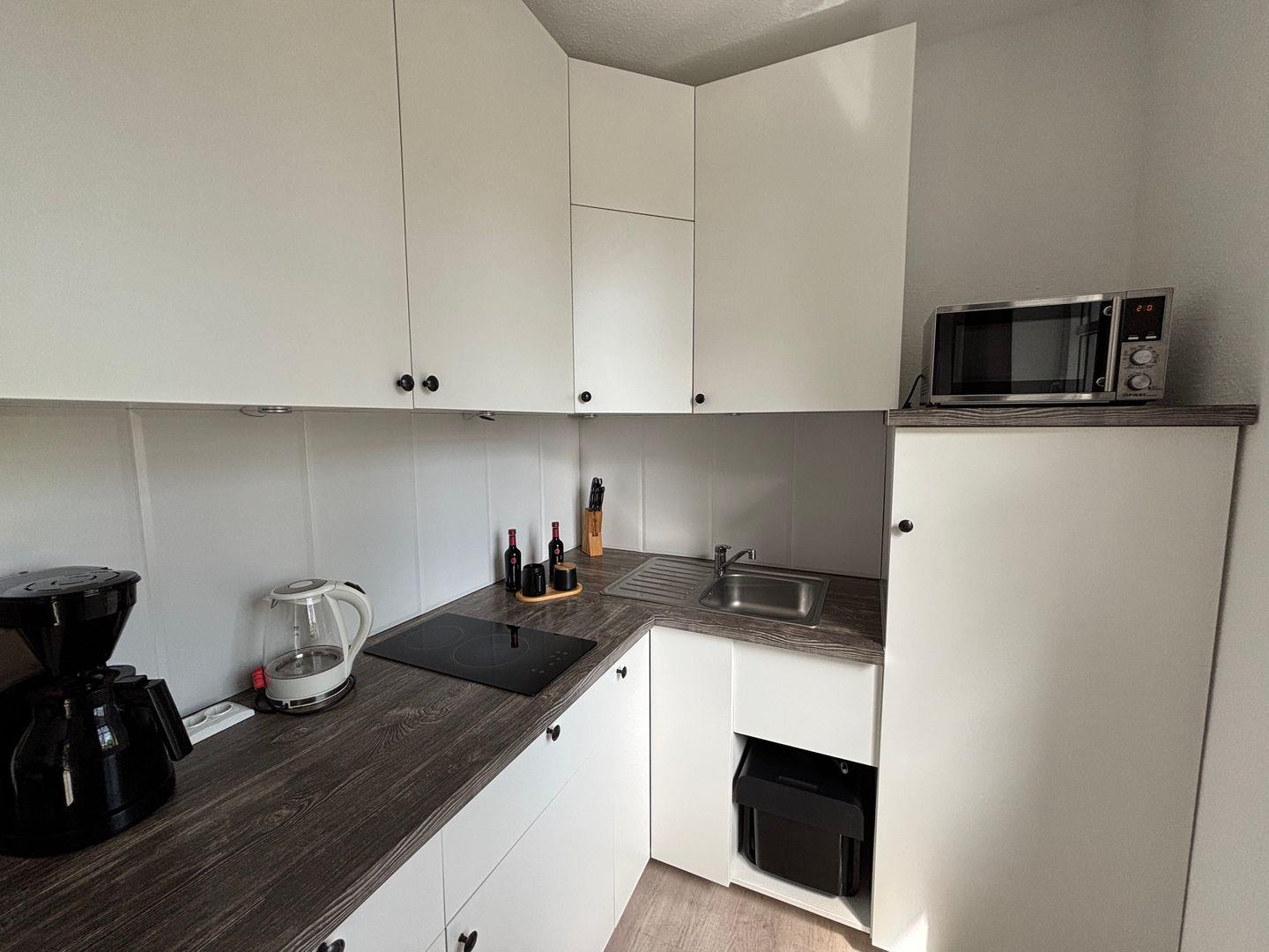 Ceranfeld mit 4 Kochzonen. Kaffeemaschine. Toaster. Eierkocher. Mikrowelle.