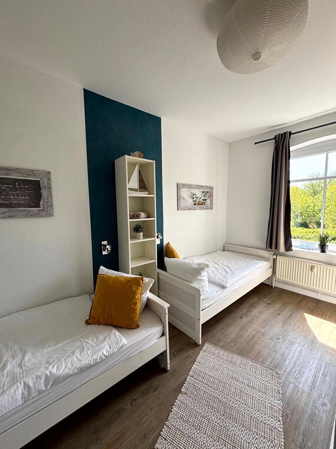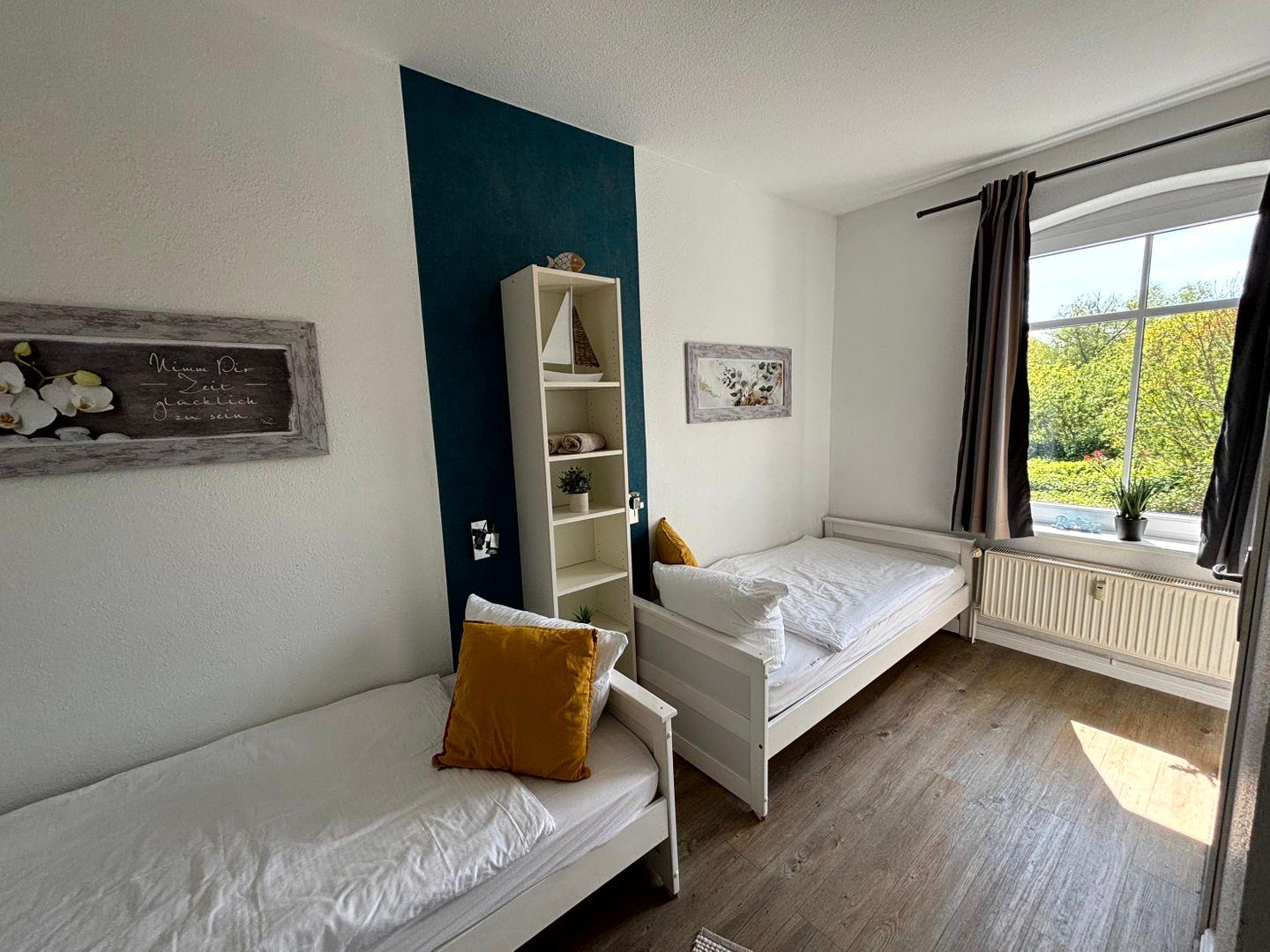 Schlafraum mit Einzelbetten.