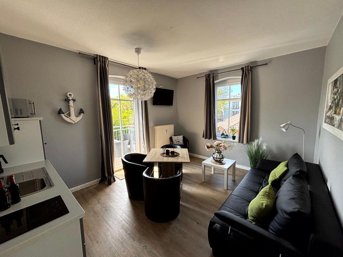 Stilvolle Ferienwohnung Koje in Dahme, nur 150 m vom Ostseestrand, mit Balkon und maritimem Flair.