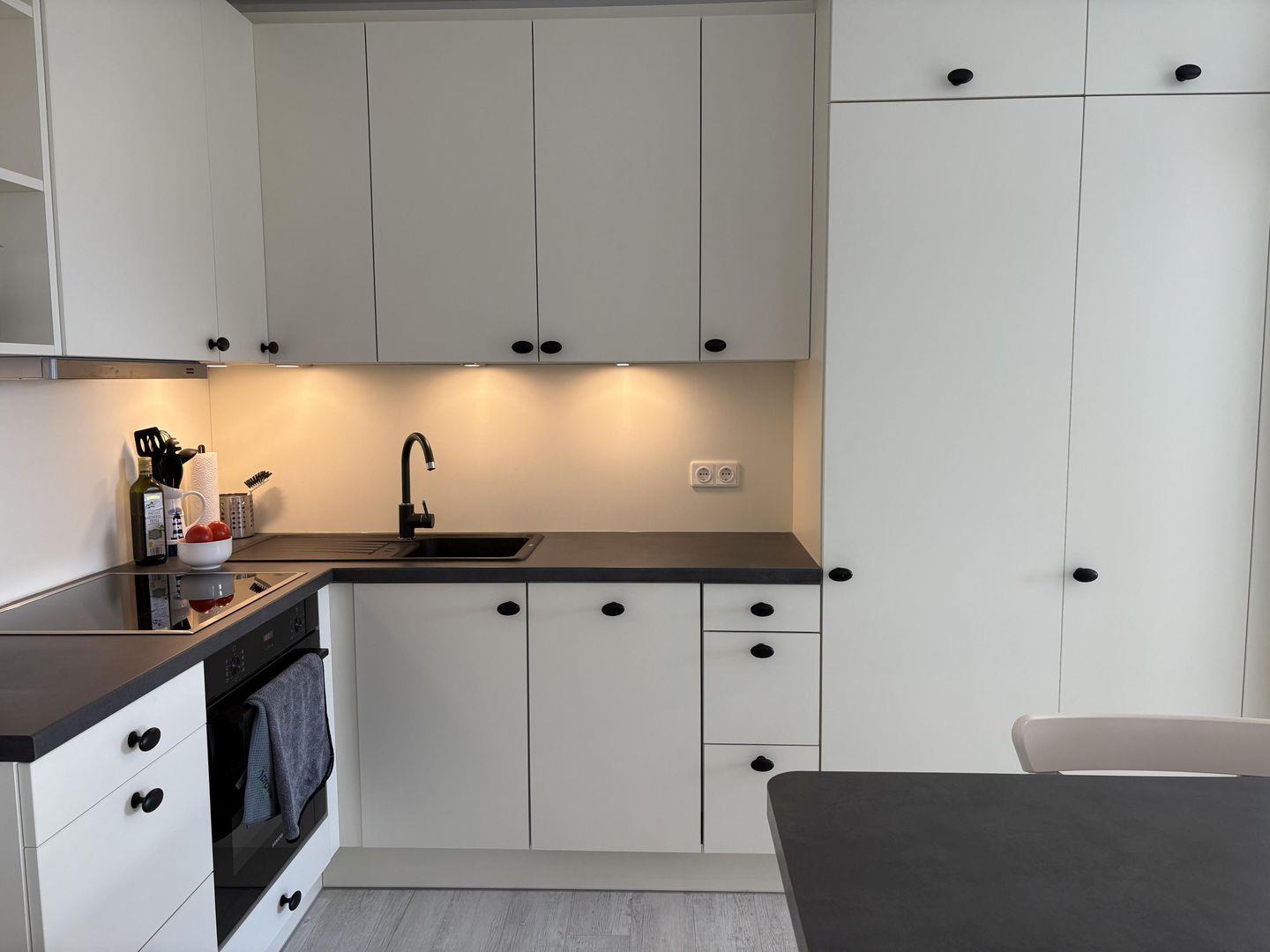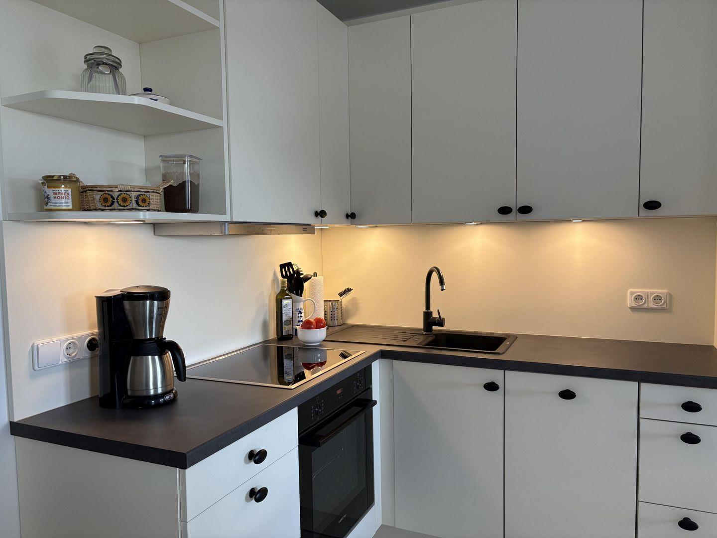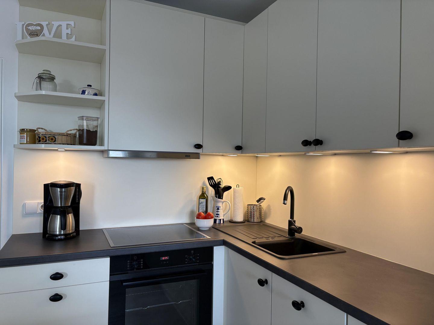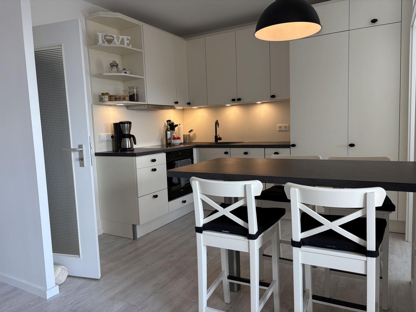 - integrierte voll ausgestattete Küche mit Induktionsherd und Backofen, Geschirrspülmaschine, Jumbo-Kühlschrank mit großem separatem Gefrierbereich,
