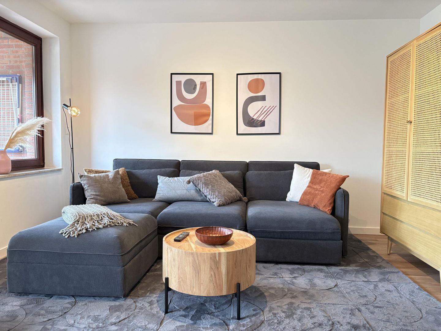 - Wohnzimmer mit gemütlichem Ecksofa und TV,