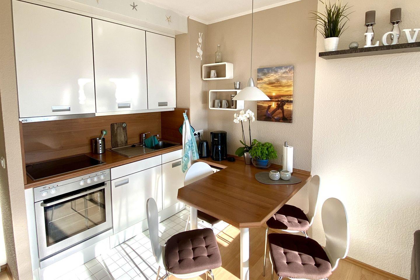 Schön gestaltete zwei Zimmer Wohnung in der Ferienanlage "Haus am Deich" für insgesamt bis zu 4 Personen. Zum Strand sind es über den Deich ca. 50 m. Die Wohnung ist im 2. Obergeschoss gelegen und verfügt, neben dem Wohn-/Esszimmer mit Schrankbett und offener Küche mit direktem Zugang zum Balkon, über ein Schlafzimmer mit Doppelbett, sowie einem schönen Duschbad. Ein PKW-Stellplatz steht Ihnen direkt am Haus zur Verfügung. Waschmaschine und Trockner stehen im Keller des Hauses. Bettwäsche und Handtücher können gegen eine Gebühr zur Verfügung gestellt werden. Die Ferienwohnung ist nur 2 Gehminuten von der schönen Dahmer Promenade und dem Strandleben entfernt! Dort finden Sie ein großes Angebot an Restaurants, Cafés, Bars sowie ein StrandSPA mit tollen Angeboten rund um Wellness, Sport und Fitness. Tennisliebhaber und Minigolfer kommen ebenfalls in Ihren Genuss! Im Ort befinden sich weitere Restaurants, ein Bäcker, Konditor, Lebensmittelmarkt, Fischgeschäft, eine Apotheke, Zahn- und Allgemeinmediziner, eine Tankstelle und ein Friseursalon. Dahme liegt zentral in der Lübecker Bucht und bietet auch in wenigen Fahrminuten schöne Ausflugsorte in der Nähe!