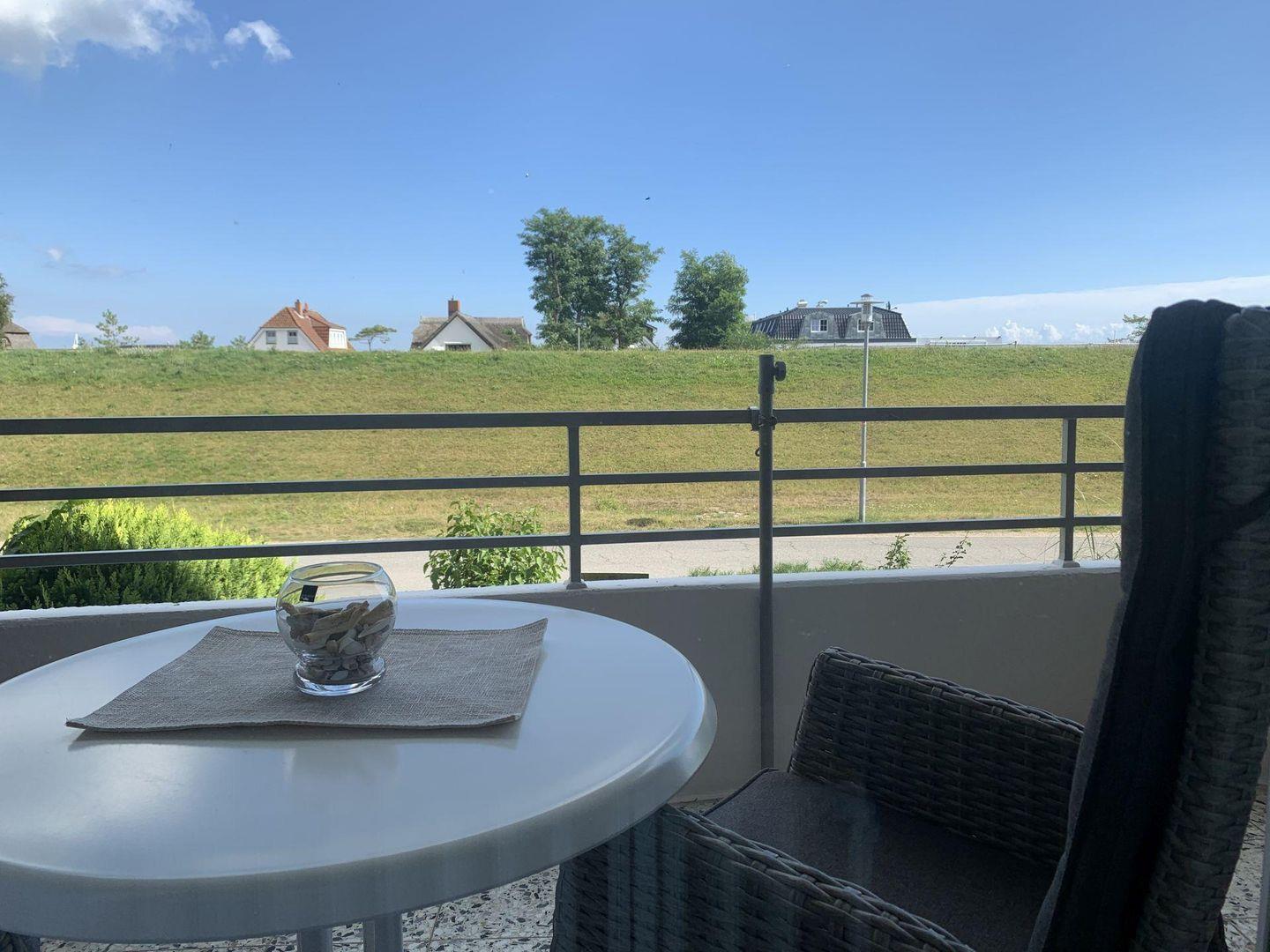 - großer möblierter Balkon in Süd-, Ostlage mit Blick auf den Deich
