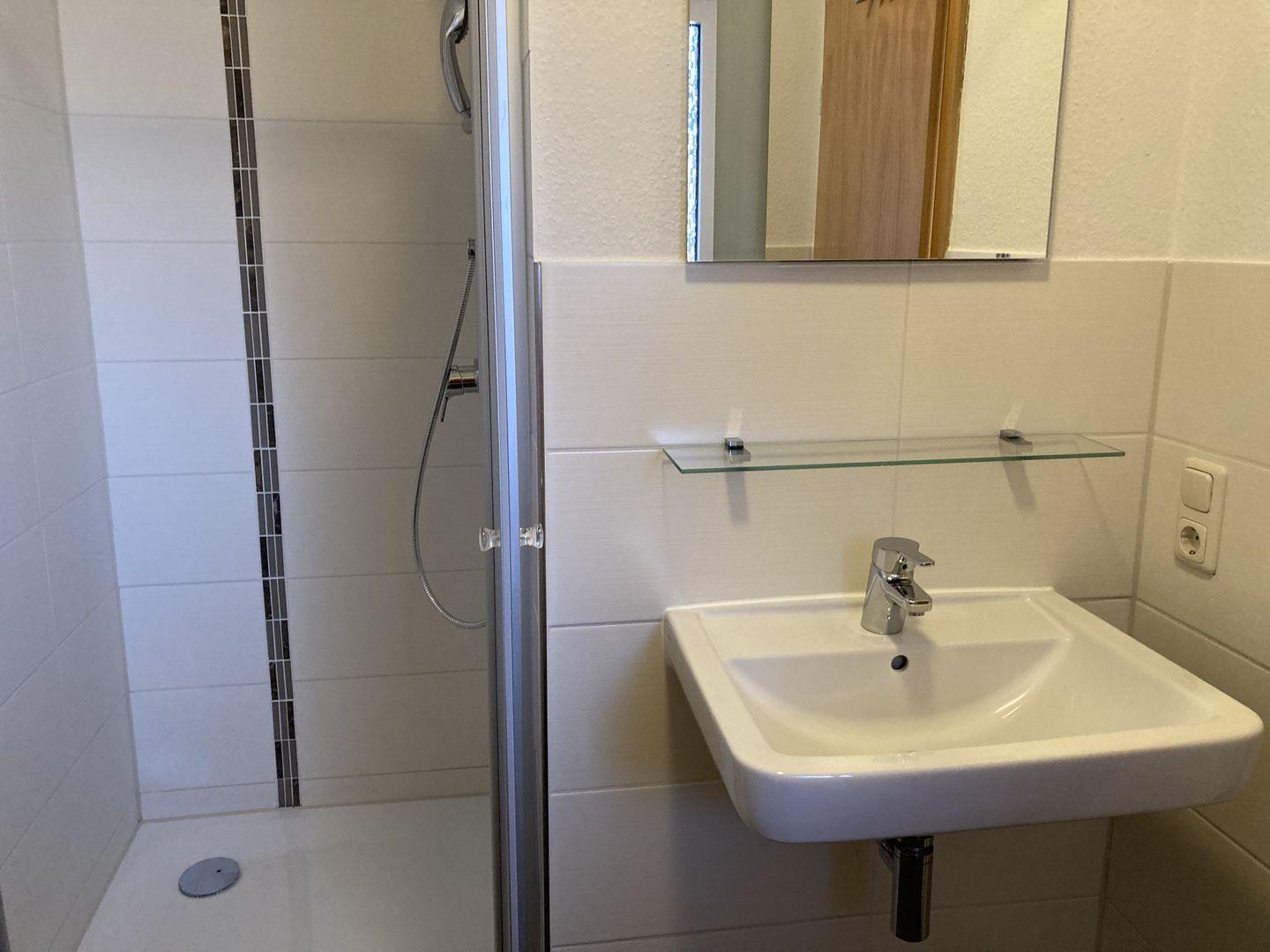 - tageslichthelles Badezimmer mit ebenerdiger Dusche und WC