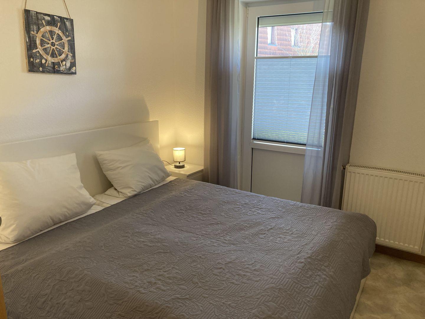 - Schlafzimmer mit Doppelbett und Kleiderschrank