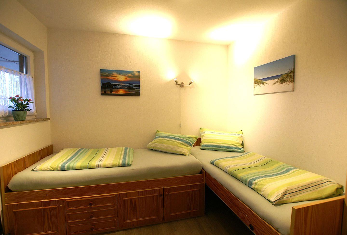 - Schlafzimmer mit 2 über Eck stehenden Einzelbetten