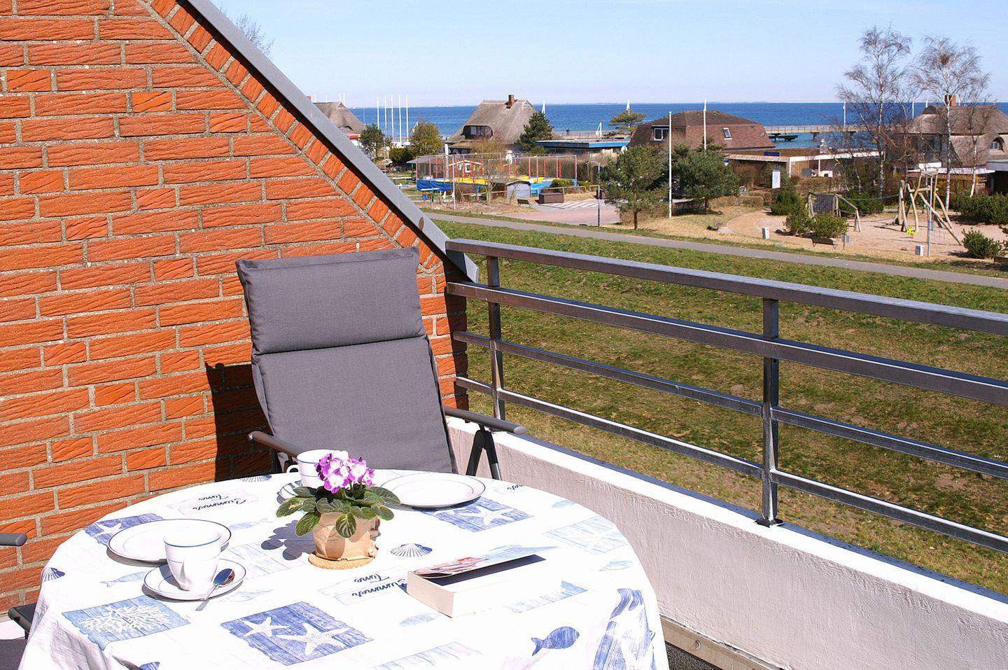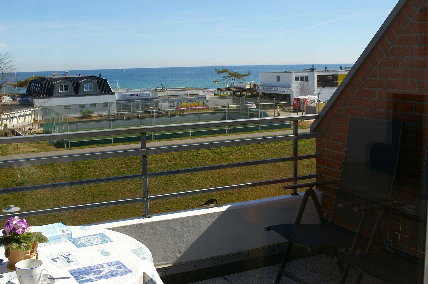 - Balkon, möbliert in Süd-, Westlage mit Blick über den Deich auf Ostsee und Promenade
