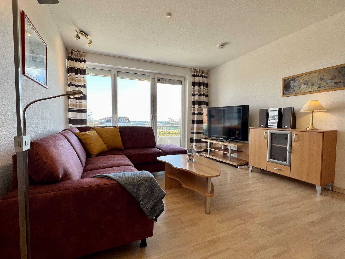 Strandnahes Zwei-Zimmer-Apartment in Dahme mit Balkon und Blick über den Deich, nur 50 m vom Strand entfernt.