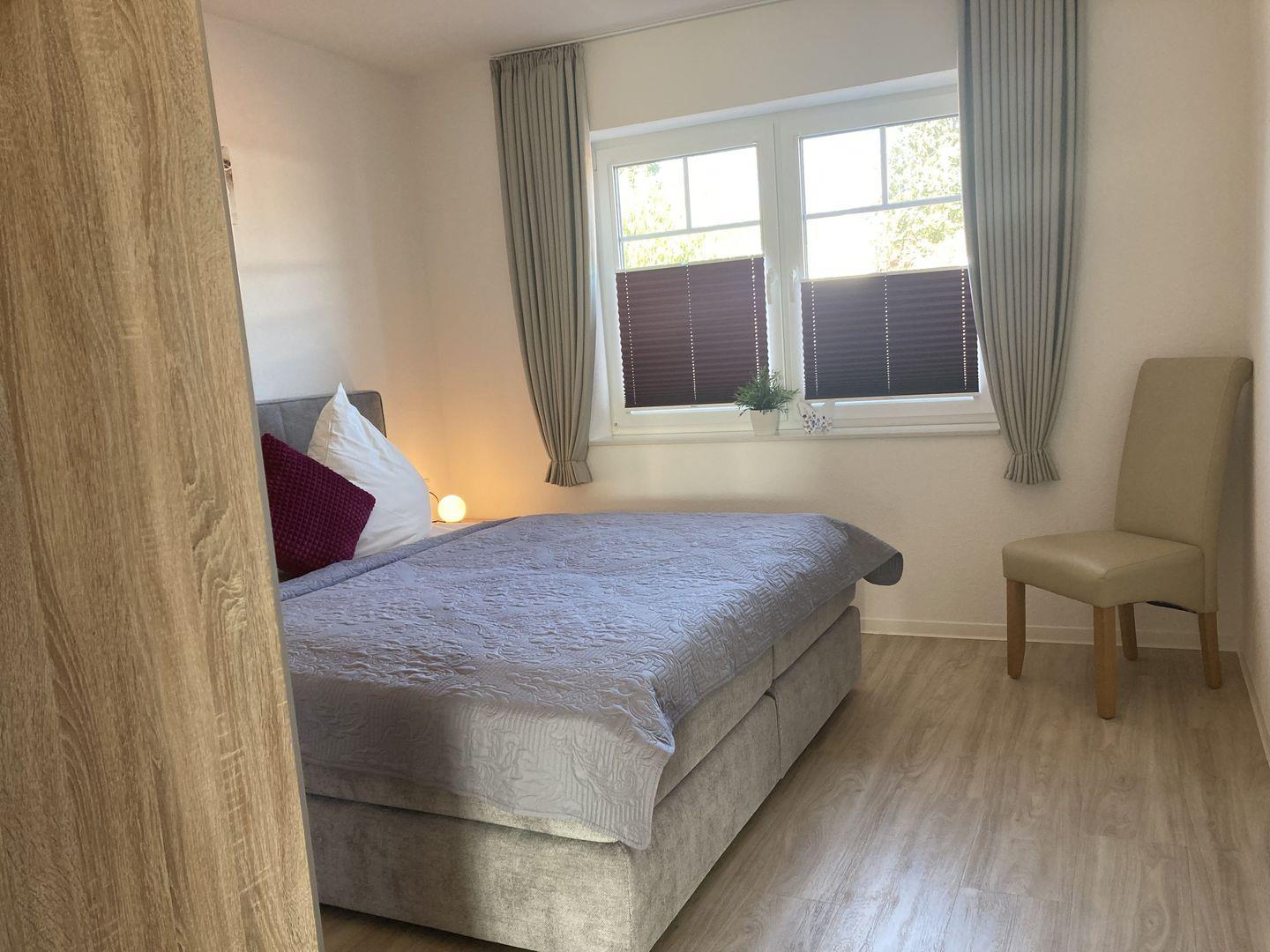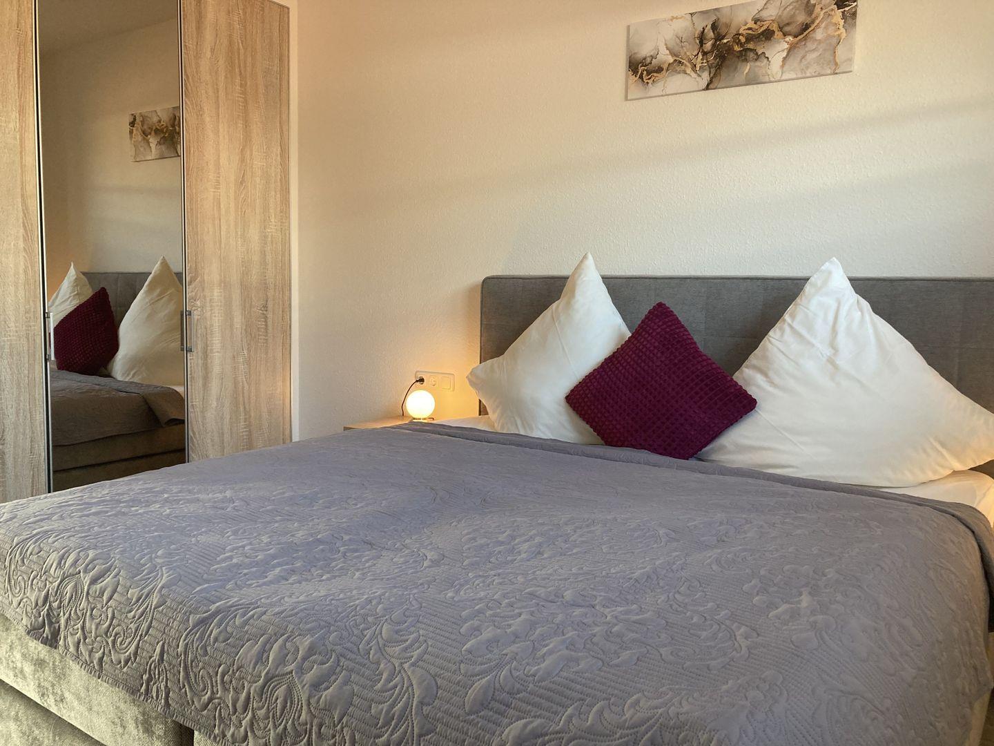 - Schlafzimmer mit Doppelbett und Kleiderschrank