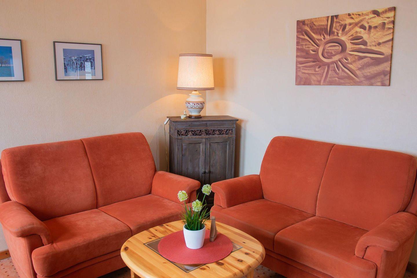 - Wohnzimmer zwei 2-sitzigen Sofas und TV