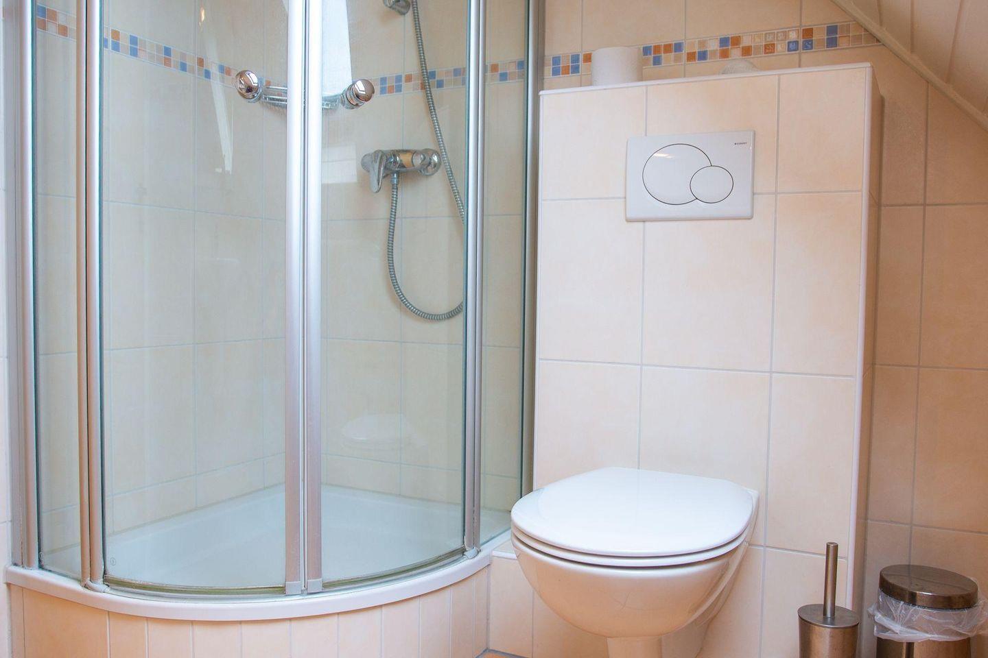 - tageslichthelle Badezimmer mit Dusche und WC