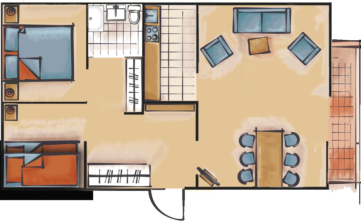 46 m² | genug Platz für bis zu fünf Personen