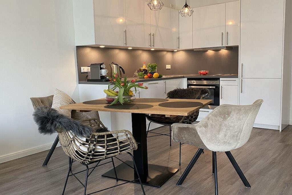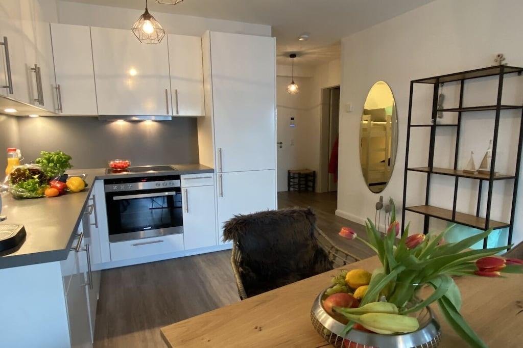 ?? Dem Meer so nah ?? Genießen Sie eine Auszeit in unserer gemütlichen Ferienwohnung in der wunderschönen OstseeFjordSchlei Region unmittelbar am Meer und dem maritimen Yachthafen. Lassen Sie einfach mal komplett Ihre Seele baumeln und tauchen Sie in eine Welt ohne Alltagsstress, in der die Uhren einfach anders gehen und genießen Wellness Momente in der Luxway Infrarotsauna mit Farblichttherapie. Die im Jahr 2020/21 neu erbaute Ferienwohnung Beach54‘ Damp ist ideal für Senioren, Paare und kleine Familien und befindet sich in der Endetage 2 OG. Barrierearm gestaltet ist diese Ferienwohnung bequem mit dem Fahrstuhl zu erreichen. Der lichtdurchflutete offene Wohn- und Essbereich mit integrierter Küchenzeile strahlt wohnliche Atmosphäre aus und das Urlaubsfeeling stellt sich im ersten Moment des Ankommens ein. Lichtdurchflutet geht es weiter in den Schlafbereich wo ein bequemes Boxspring-Doppelbett für erholsame Nächte sorgt. Ein weiteres Schlafzimmer „Lütt’n Kombüse“ ist mit einem Etagenbett 90cm x 200 cm ausgestattet . Das großzügige Bad mit bodengleicher Dusche sorgt für maritime Wellness Momente und es verfügt über genügend Ablageflächen. Für Unterhaltung steht ein Flatscreen TV incl. Magenta TV sowie das kostenlose WLAN zur Verfügung. Der teilüberdachte Balkon mit Blick auf die Ostsee ( im Sommer leicht eingeschränkt durch das Laub der Bäume ) und seiner Südost Lage verspricht viele schöne Sonnenstunden. Diesen Blick genießen Sie auch von der gemütlichen Sitzecke sowie von dem Schlafbereich aus . Die Ferienwohnung ist mit bodentiefen dreifach verglasten Fenster ausgestattet. Kinderbett, Kinder- Hochstuhl sowie Schlafsofa stehen zur Verfügung. E- Ladestationen befinden sich ca 350m von der Ferienwohnung entfernt. Ev. fallen Parkgebühren an!