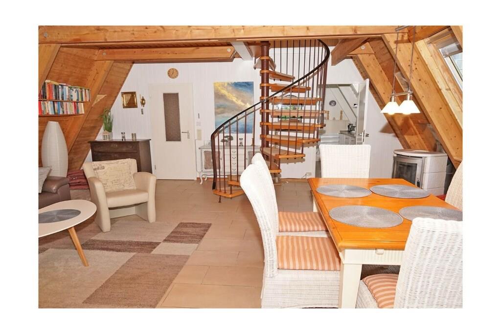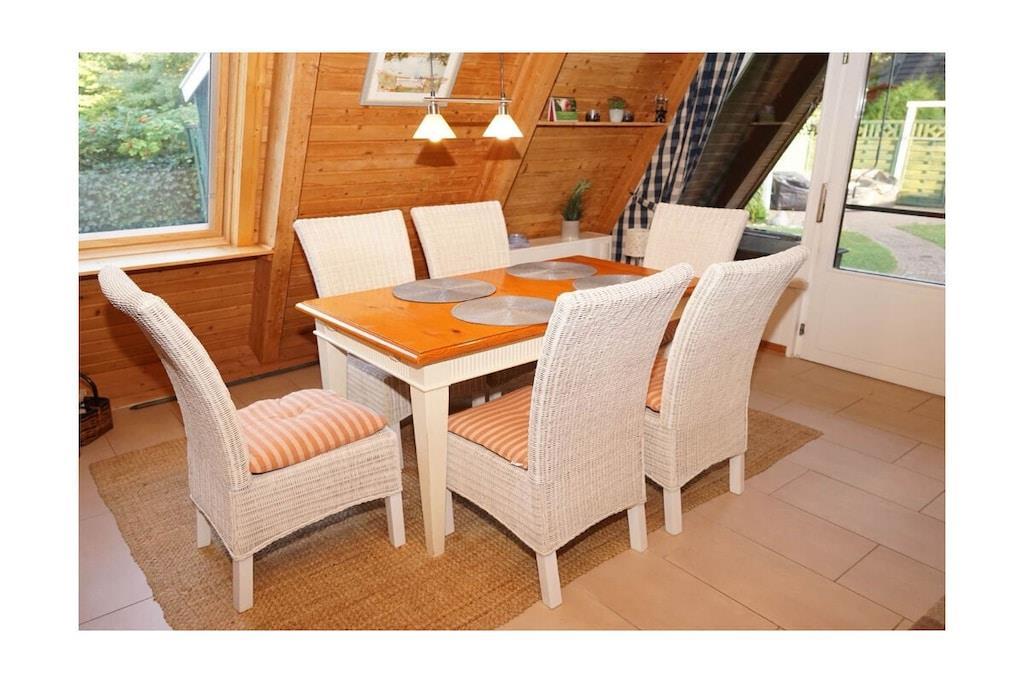 Charmantes Ferienhaus in nahezu Sackgassenlage an der Windmühle in Damp. Bietet Platz für max. 6 Gäste. Im EG eine vollausgestattete Küche, ein Duschbad mit Fußbodenheizung, sowie Wohn- und Esszimmer mit Kamin und im OG befinden sich 2 Schlafzimmer. Der Strand ist bequem zu Fuß erreichbar. Gartenlounge mit Grill und der vollständig umzäunte Garten. Im Gartenhäuschen finden Sie eine Sauna. Parken Sie ihr Fahrzeug direkt am Haus. Kostenloses 5G WLAN. Für unsere kleinen Gäste bieten wir ein Kinderreisebett mit Matratze und einen Hochstuhl, sowie Absperrgitter für die Wendeltreppe. Zu buchbares Wäschepaket für 15EURO Nichtraucher-Haus! Für die Vierbeiner ist ein Trink- und Futternapf (höhenverstellbar) und ein XL orthopädisches Kissen vorhanden. Eine Schlafcouch um im Erdgeschoss schlafen zu können. Wir sind in dringenden Fällen 24/7 erreichbar. Wir freuen uns darauf, Sie in unserem Ferienhaus Mühlenblick begrüßen zu dürfen
