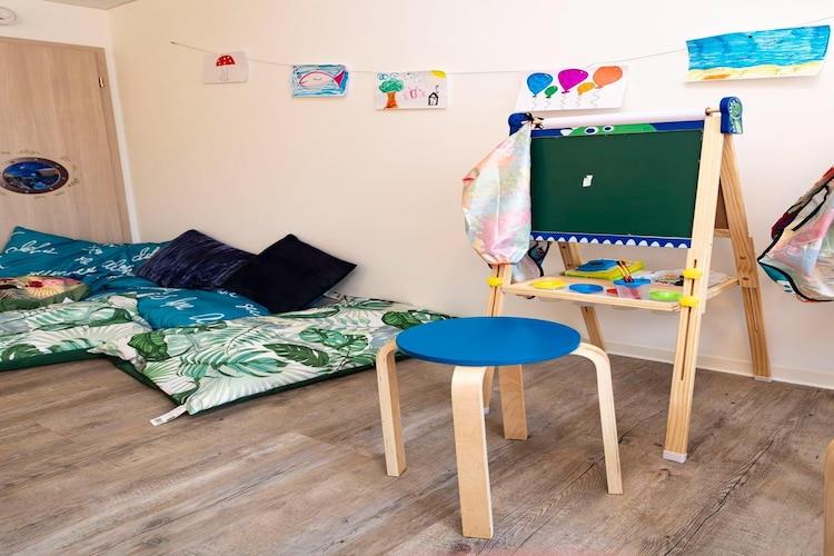 Parterre: (offene Küche(Kochplatte(4 Kochplatten, Ceranfeld), Wasserkocher, Toaster, Kaffeemaschine, Backofen, Mikrowelle, Spülmaschine, Kühlschrank, Mixer), Wohn/Esszimmer(Doppelschlafcouch, TV, Esstisch, Kaminofen, Stereoanlage), Toilette(Waschbecken, Toilette)) In der 1. Etage: (Schlafzimmer(Doppelbett(160 x 200 cm), TV), Badezimmer(Whirlpool, Dusche, Sauna, Waschbecken, Toilette, Waschmaschine, Föhn)) Indoor Spielraum, Heizung, Terrasse, Gartenmöbel, Parkplatz, Fitnessgeräte(Gemeinschaftliche Nutzung mit anderen Gästen), Wäschepaket inklusive