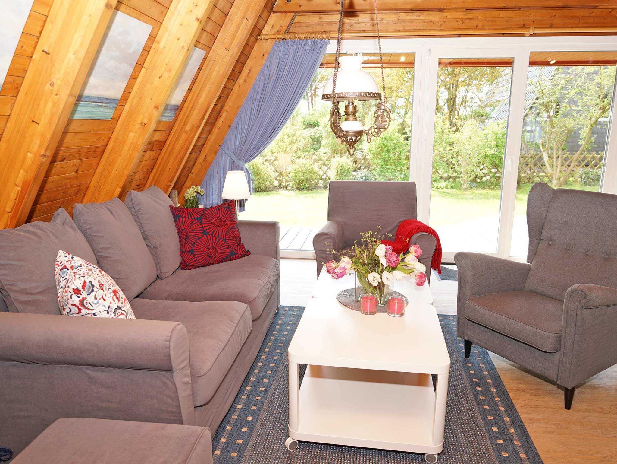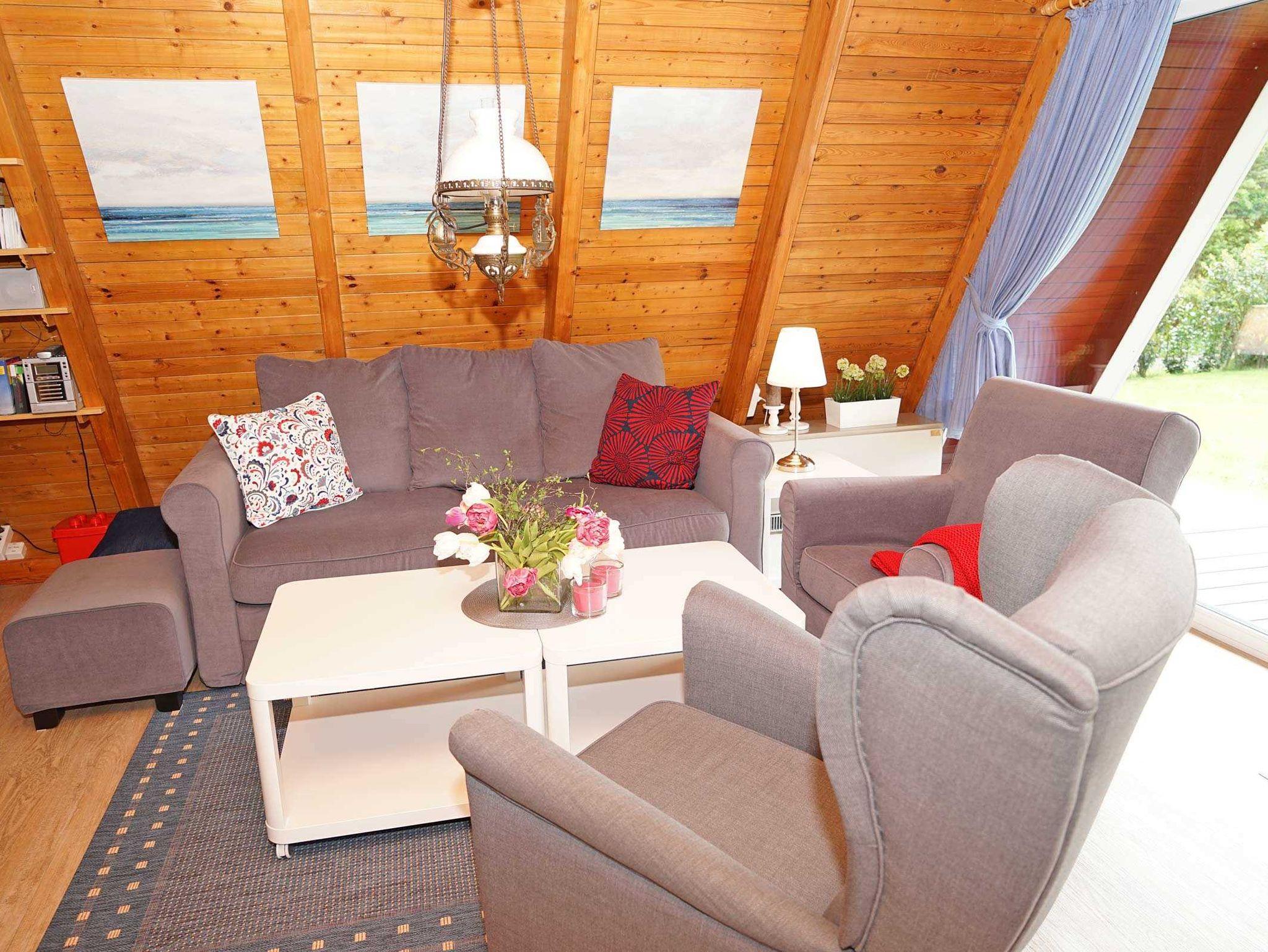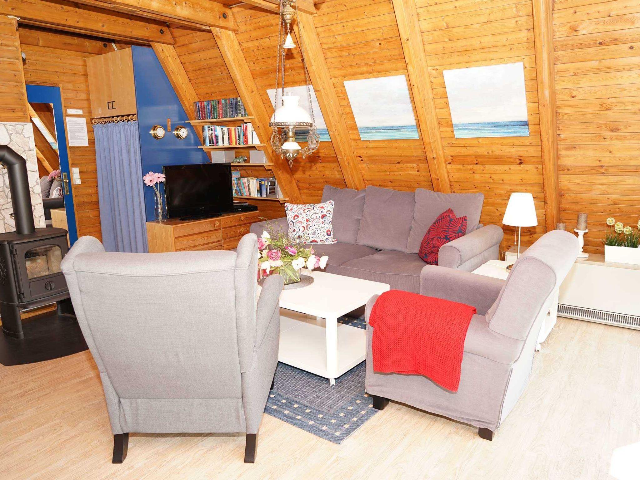 Sie wohnen auf 2 Ebenen. Im unteren Bereich des Hauses befindet sich das Wohnzimmer (mit Kamin), die Essecke, die Küche (mit Geschirrspüler und Waschmaschine), Bad, Flur und teilweise überdachte Terrasse mit Gartenmöbel. Im oberen Bereich verfügen Sie über 2 Schlafzimmer für bis zu 5 Personen. Ein PKW-Stellplatz befindet sich vor dem Haus. Kinderreisebett und Kinderhochstuhl befinden sich im Haus.