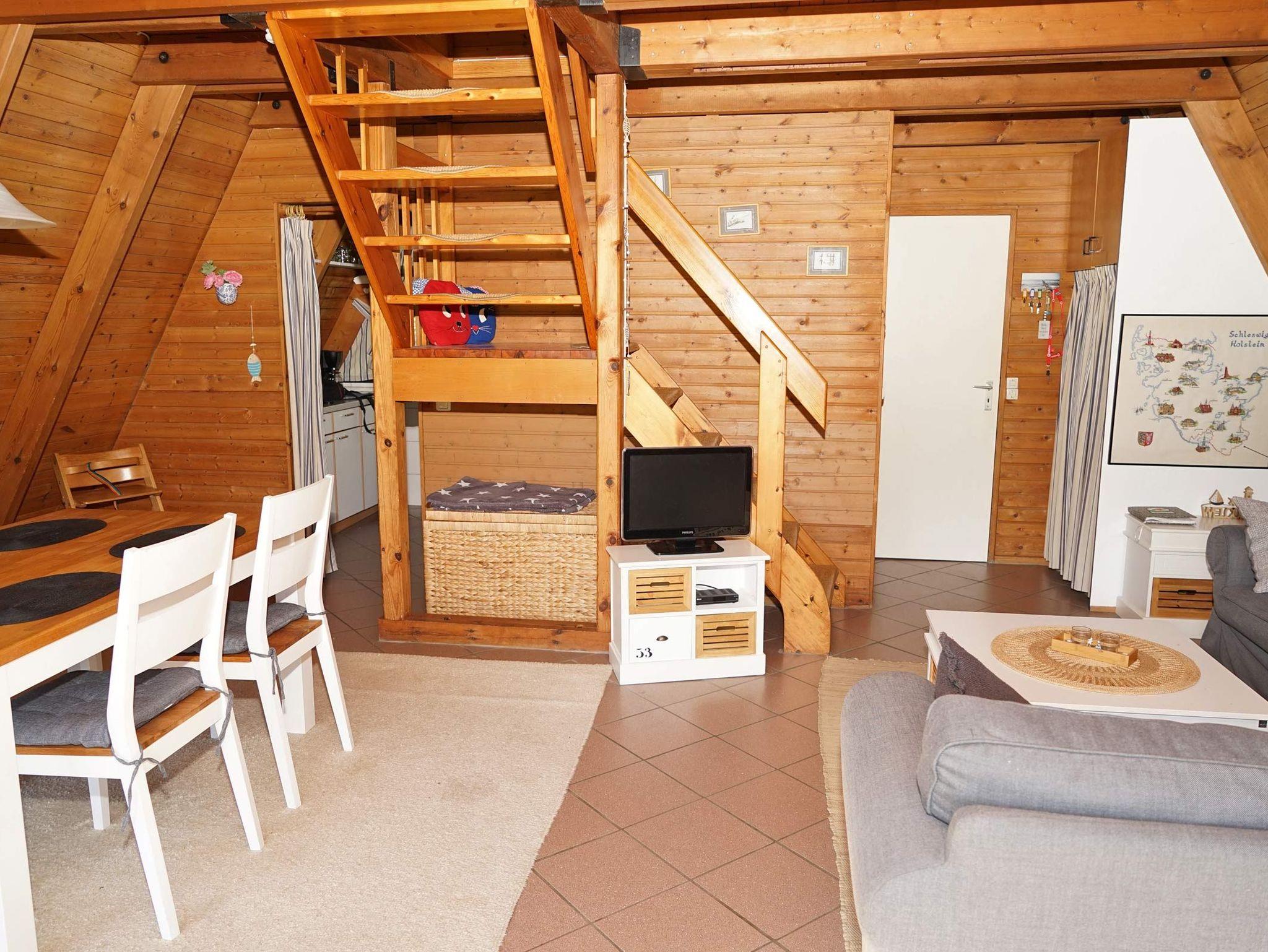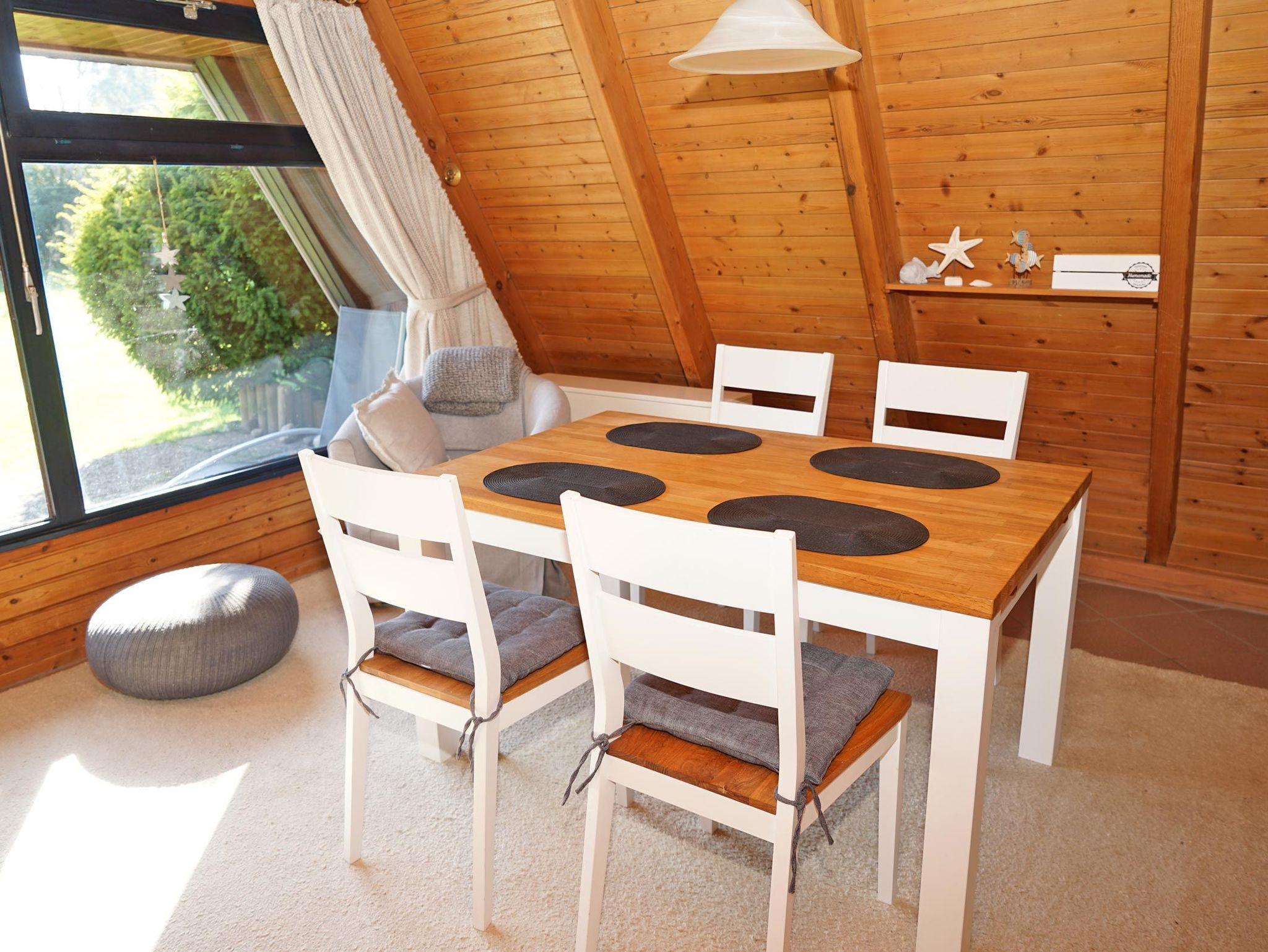 Unser Zeltdachhaus verfügt über zwei getrennte Schlafräume (im oberen Bereich des Hauses), kombiniertes Wohn- und Esszimmer, vollwertige Küche und Terrasse. Ein Kinderreisebett und Kinderhochstuhl sind immer vorhanden und kostenlos nutzbar.