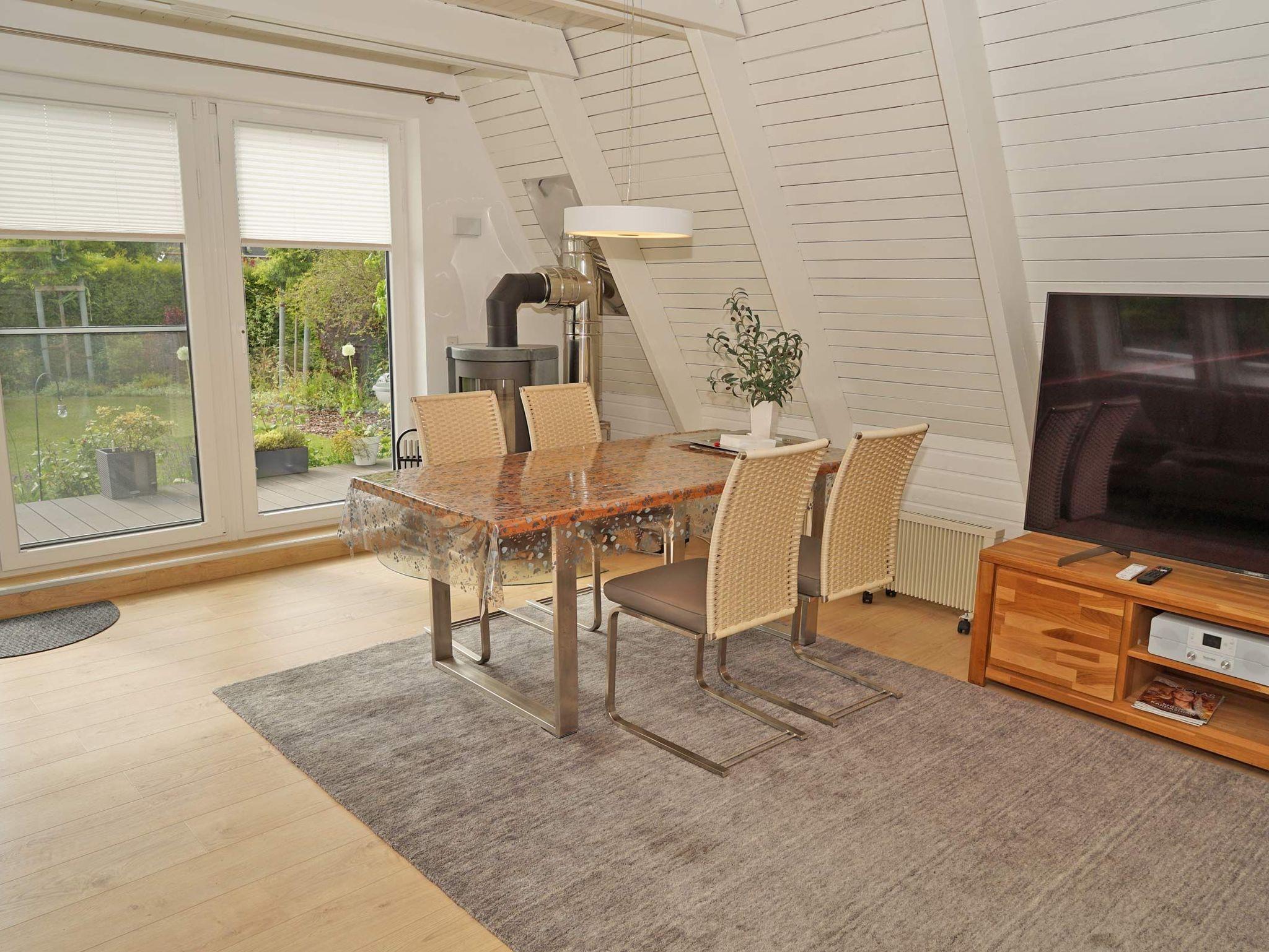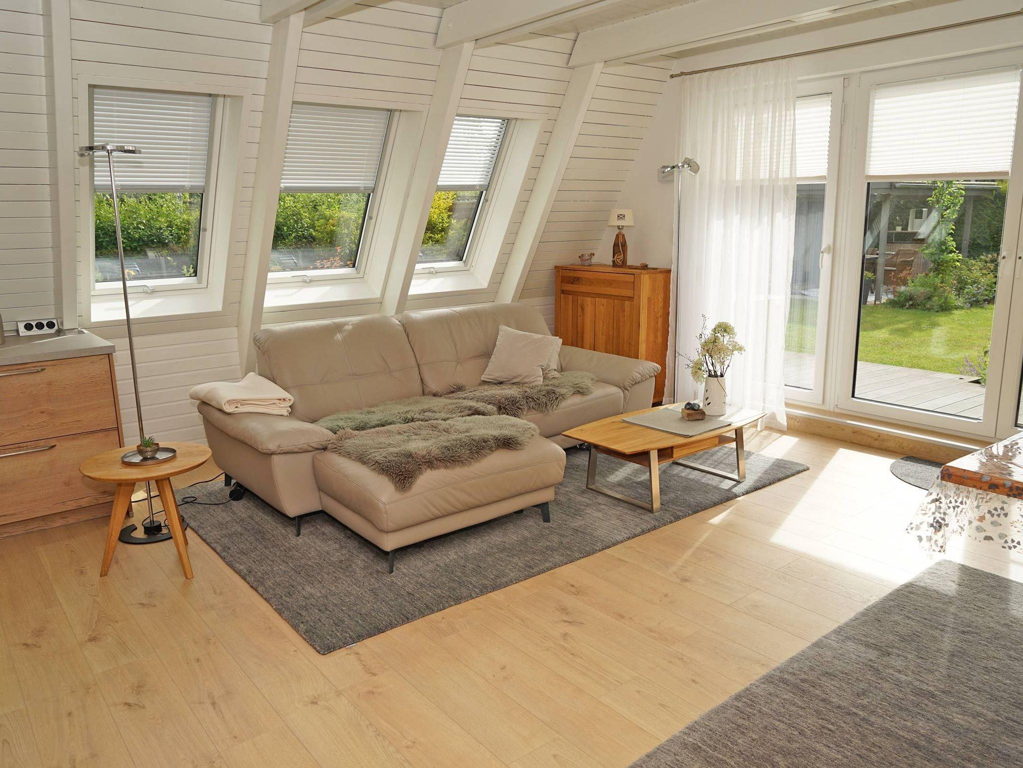 Strandnahes Zeltdachhaus in Damp mit WLAN, großer Terrasse und eigenem Grundstück für erholsame Ferien.